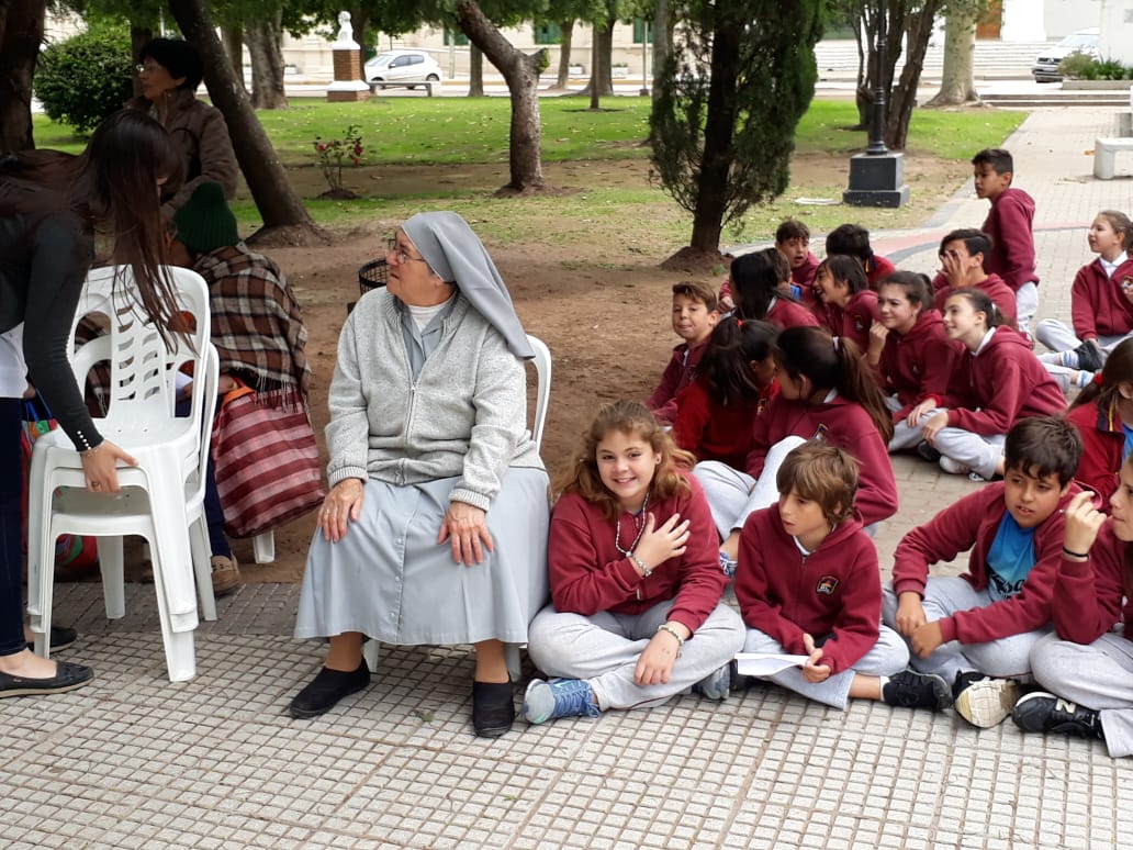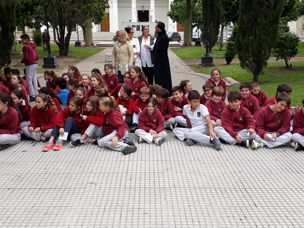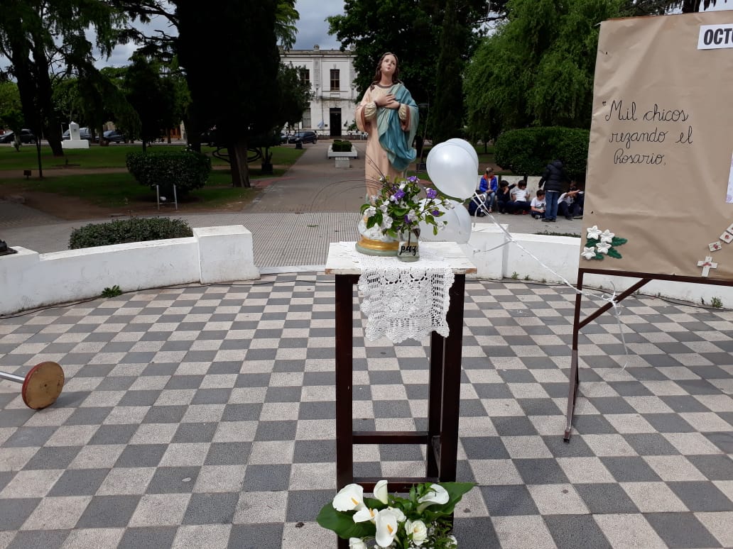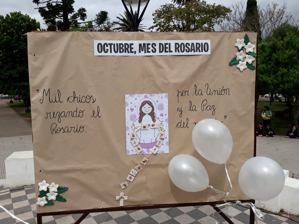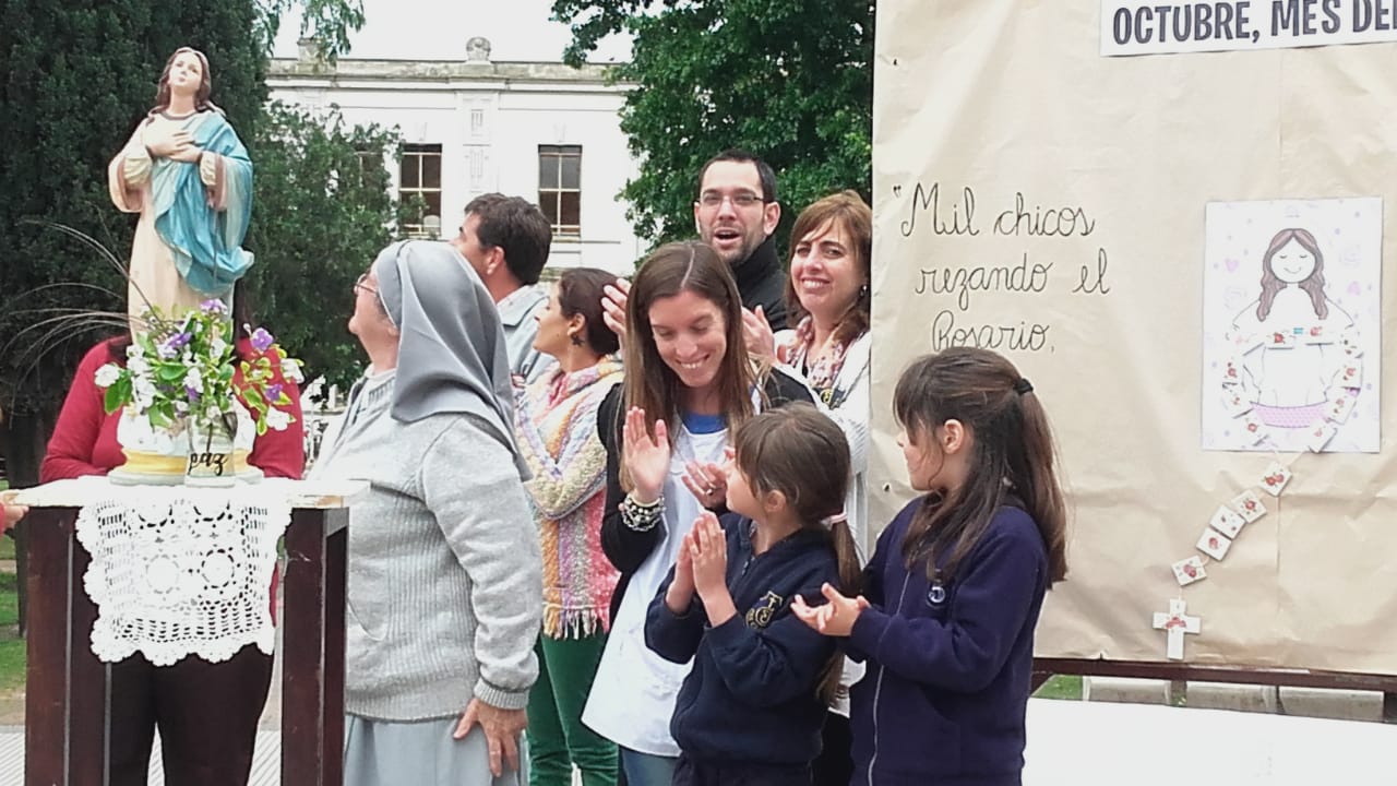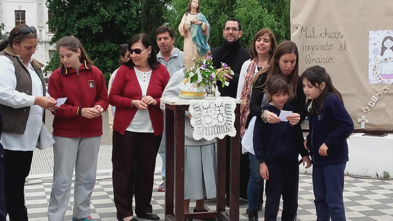 Agradeciendo desde ya la invitación del Colegio San José, estuvimos en la rotonda de la Plaza San Lorenzo, a fin de estar presentes en el rezo del Rosario de la jornada llamada»1000 chicos rezando por la unión y la paz del mundo».