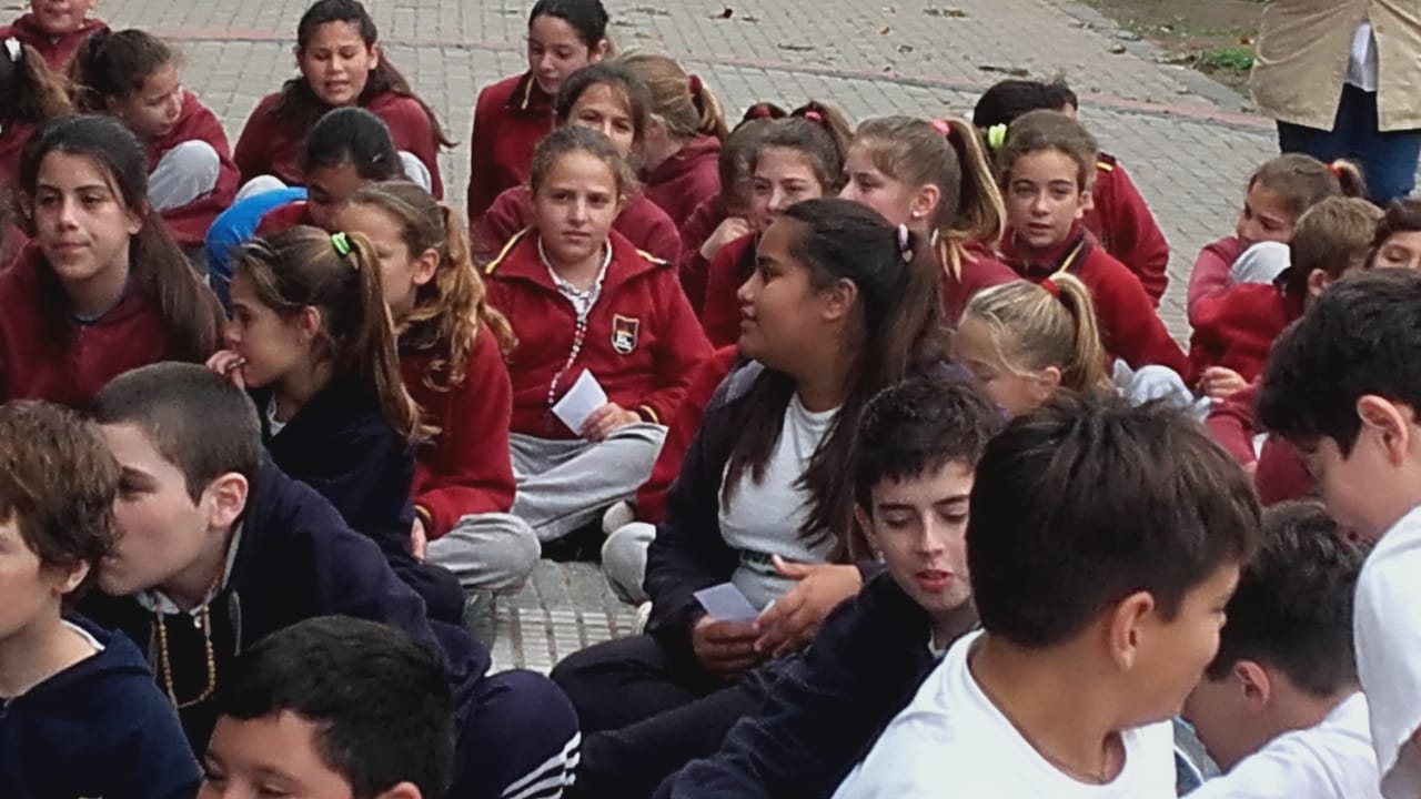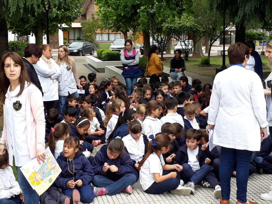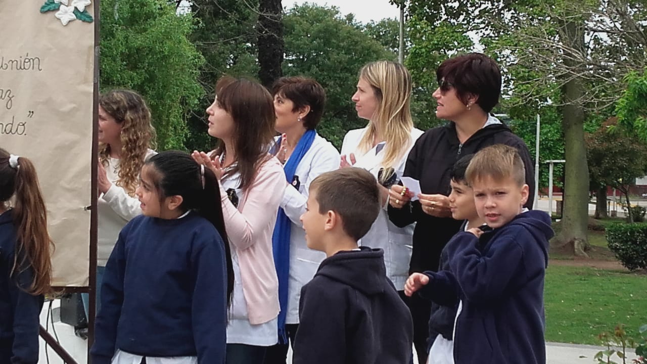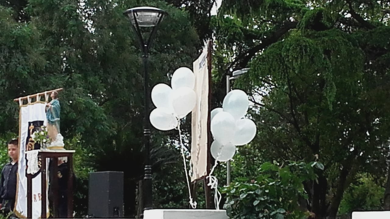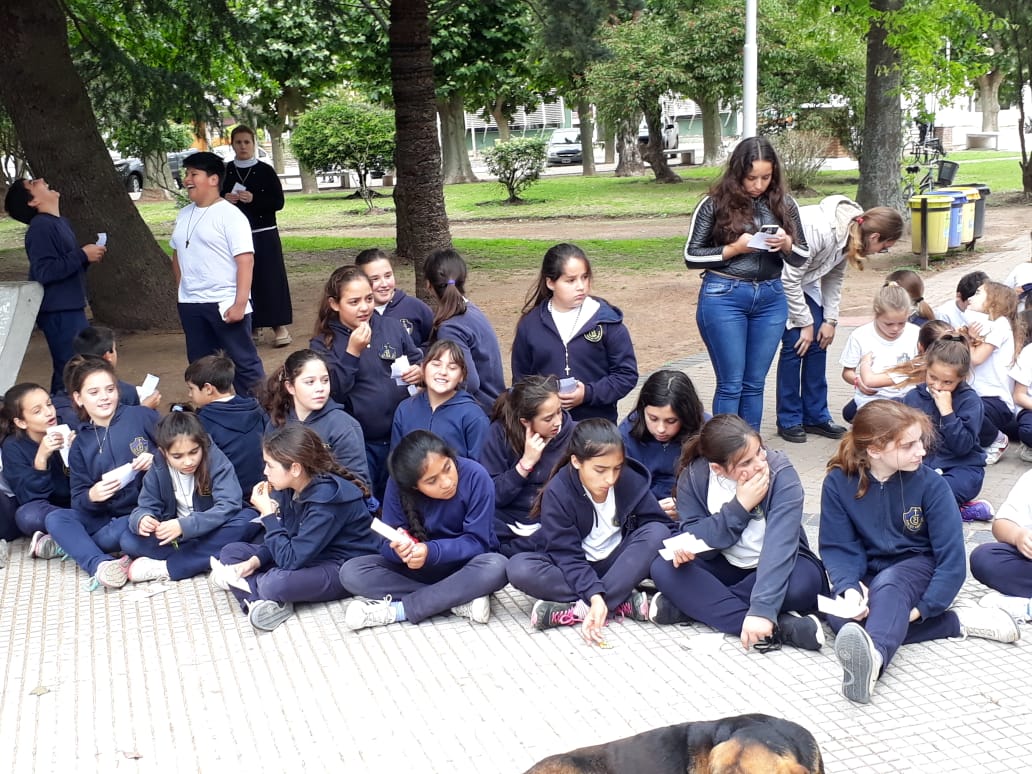Agradeciendo desde ya la invitación del Colegio San José, estuvimos en la rotonda de la Plaza San Lorenzo, a fin de estar presentes en el rezo del Rosario de la jornada llamada»1000 chicos rezando por la unión y la paz del mundo».