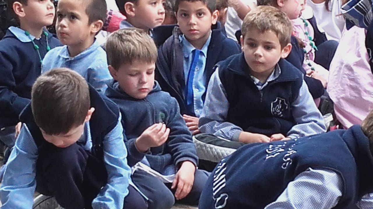 1000 chicos rezando por la unión y la paz del mundo. Hace instantes en Plaza San Lorenzo