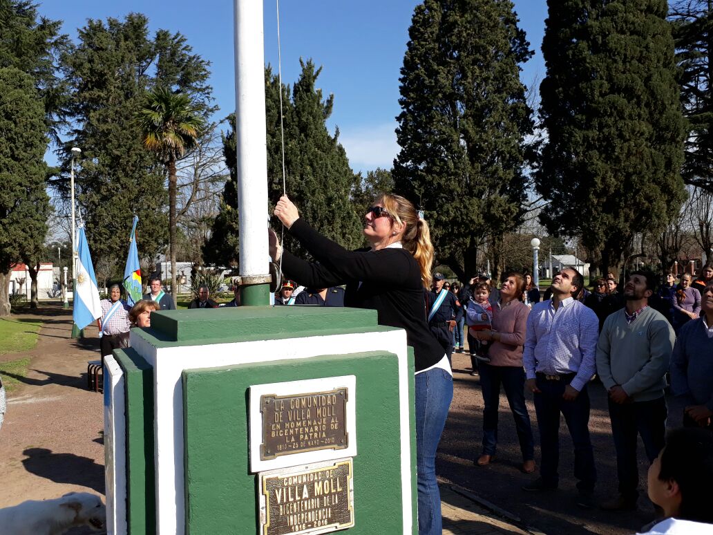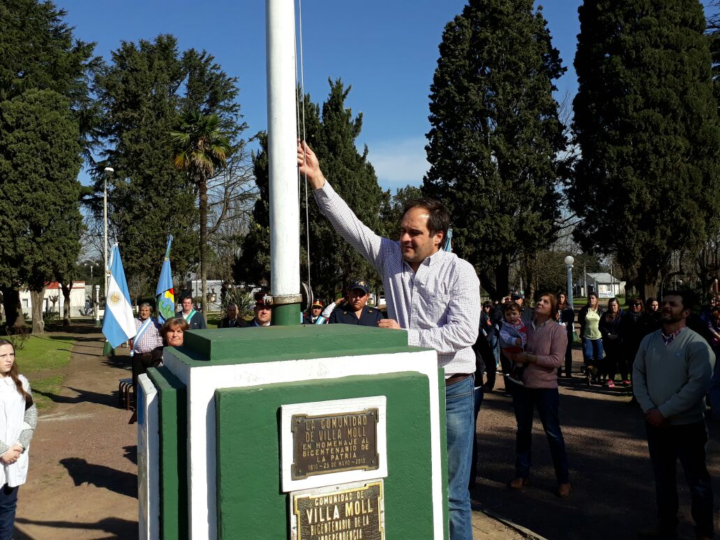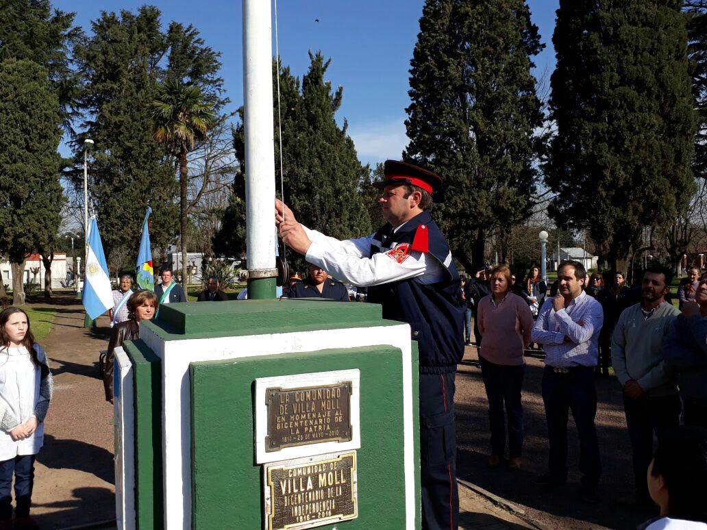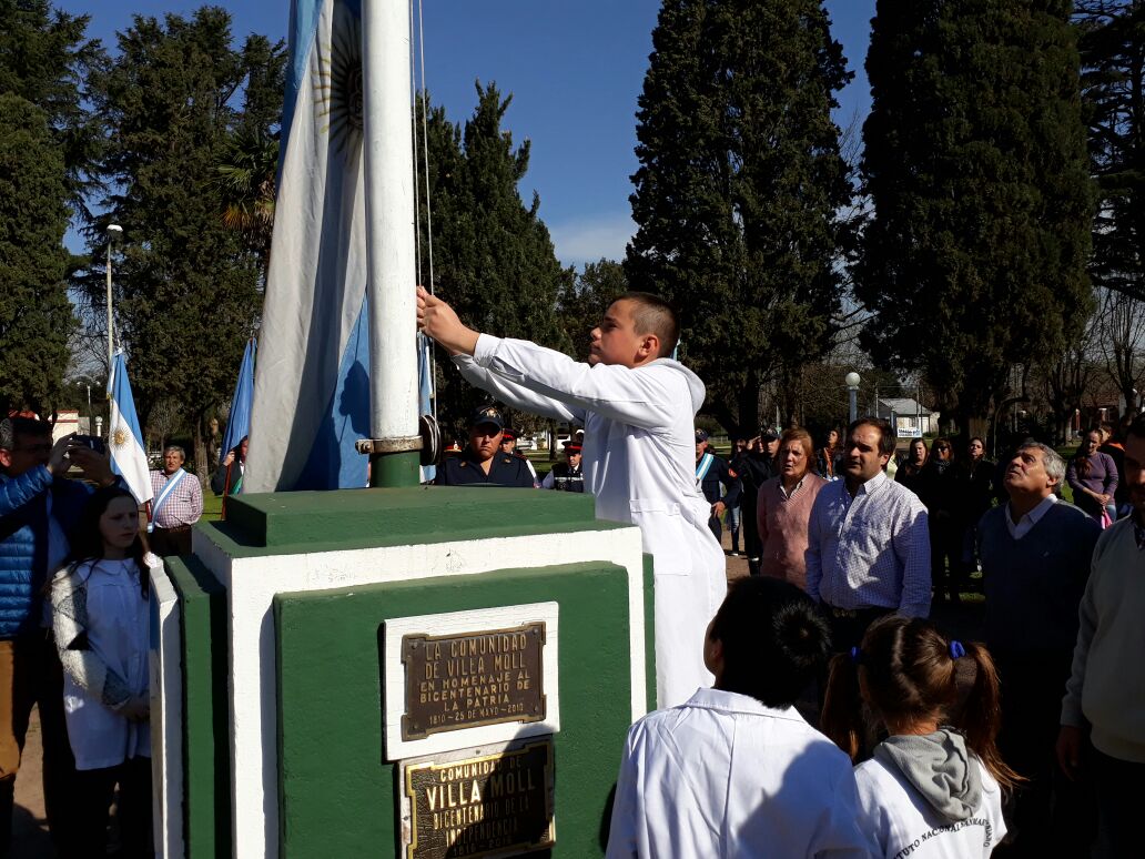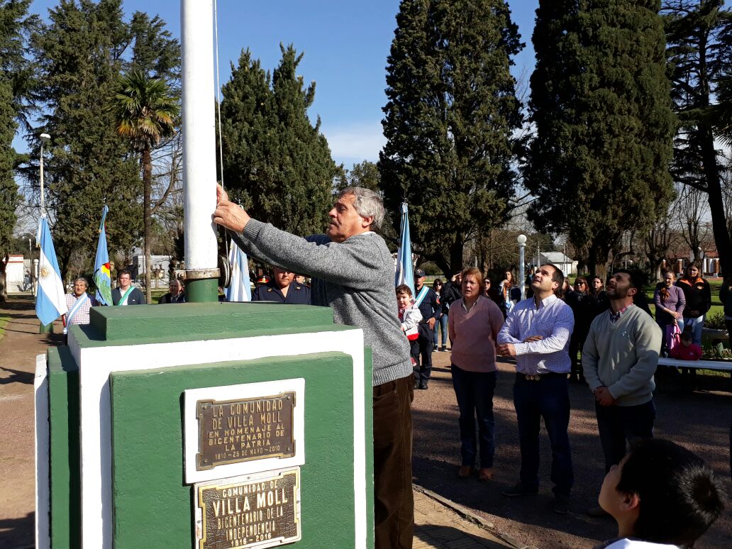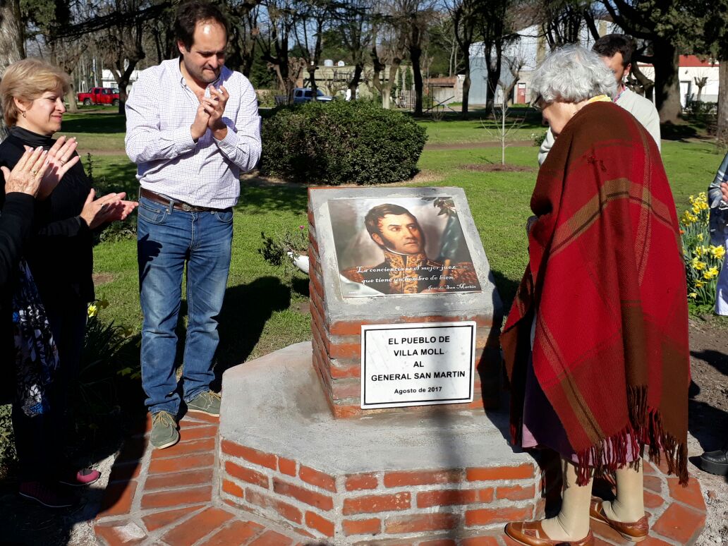 Esta tarde, a las 15 hs en la plaza El Progreso de la localidad de Villa Moll, se realizó el acto conmemorativo por el fallecimiento del General José de San Martín. Primeramente se produjo el izamiento del Pabellón Nacional y posterior arreo a media asta, por parte de los alumnos de las escuelas y autoridades presentes. A continuación, se entonaron las estrofas del Himno Nacional Argentino. Más tarde se llevó a cabo la recepción de ofrendas en sobre cerrado a beneficio de la Cooperadora de la E.P. Nº 19. Luego se produjo el toque a silencio y minutos más tarde el descubrimiento del hito del Padre de la Patria. Después se entregaron reconocimientos a alumnos y docentes ganadores del Concurso Nacional “Cruce de los Andes”. Mas tarde,el alumnado de la EP Nº 19 entonó la Marcha de San Lorenzo y a continuación llegaron las palabras alusivas a cargo de la Directora de la EP Nº 19. Sra. María Leonor Meoniz. Luego se dirigió a los presentes, el señor Intendente Municipal Santiago Maggiotti. Finalizó el acto con el retiro de las banderas de ceremonia y a continuación todos los presentes pudimos disfrutar de una Muestra sobre la vida y obra del General San Martín en las instalaciones de la EP Nº 19. El acto contó con la presencia de varias delegaciones escolares, Ex Combatientes de Malvinas y Bomberos de Navarro y Villa Moll, entre otras instituciones. El día acompañó, así como lo hicieron los vecinos de Villa Moll, lo que redondeó una hermosa tarde.