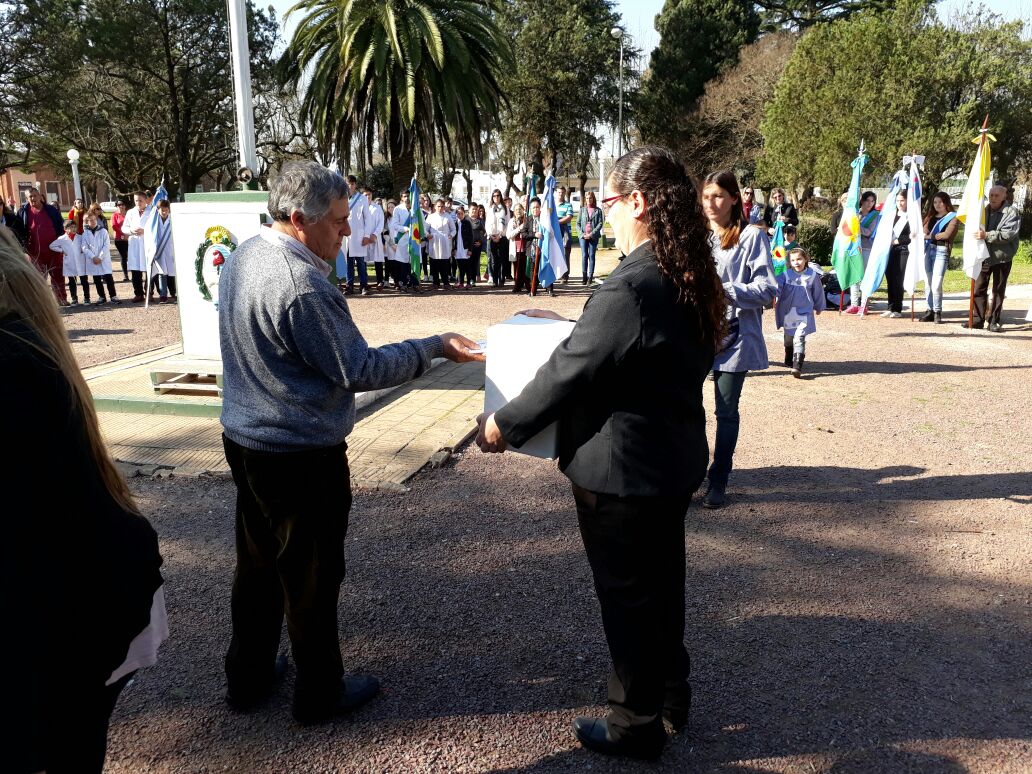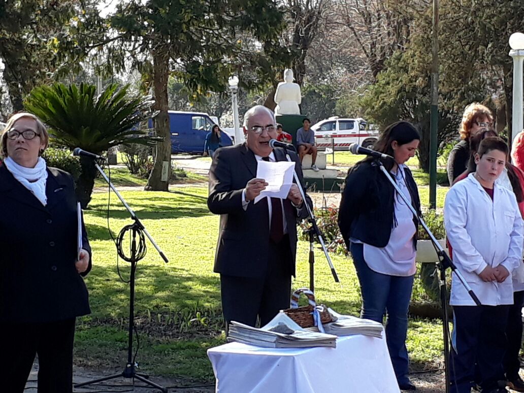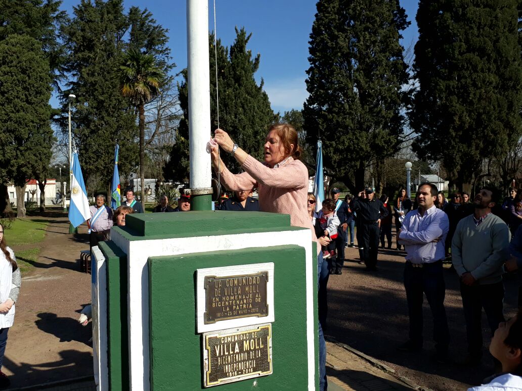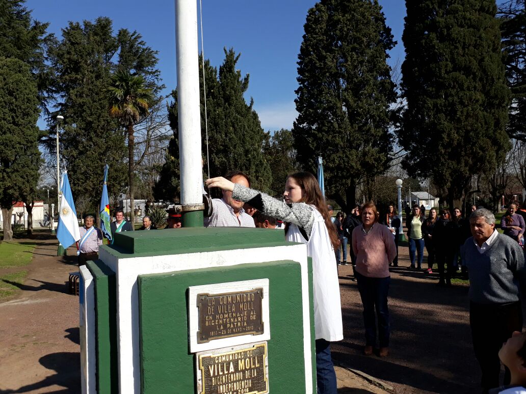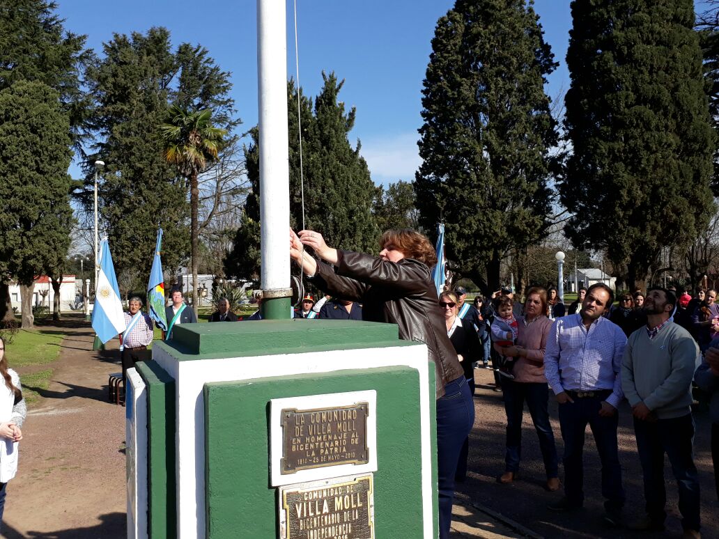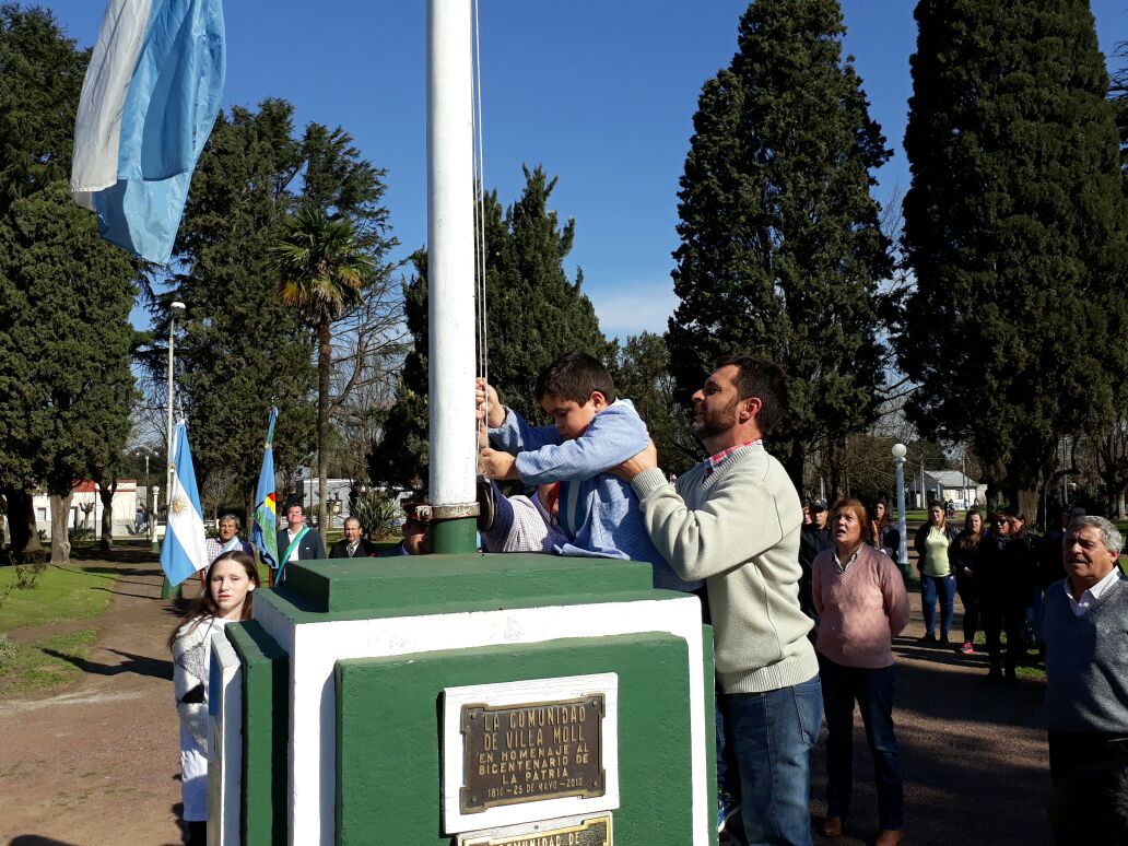 Esta tarde, a las 15 hs en la plaza El Progreso de la localidad de Villa Moll, se realizó el acto conmemorativo por el fallecimiento del General José de San Martín. Primeramente se produjo el izamiento del Pabellón Nacional y posterior arreo a media asta, por parte de los alumnos de las escuelas y autoridades presentes. A continuación, se entonaron las estrofas del Himno Nacional Argentino. Más tarde se llevó a cabo la recepción de ofrendas en sobre cerrado a beneficio de la Cooperadora de la E.P. Nº 19. Luego se produjo el toque a silencio y minutos más tarde el descubrimiento del hito del Padre de la Patria. Después se entregaron reconocimientos a alumnos y docentes ganadores del Concurso Nacional “Cruce de los Andes”. Mas tarde,el alumnado de la EP Nº 19 entonó la Marcha de San Lorenzo y a continuación llegaron las palabras alusivas a cargo de la Directora de la EP Nº 19. Sra. María Leonor Meoniz. Luego se dirigió a los presentes, el señor Intendente Municipal Santiago Maggiotti. Finalizó el acto con el retiro de las banderas de ceremonia y a continuación todos los presentes pudimos disfrutar de una Muestra sobre la vida y obra del General San Martín en las instalaciones de la EP Nº 19. El acto contó con la presencia de varias delegaciones escolares, Ex Combatientes de Malvinas y Bomberos de Navarro y Villa Moll, entre otras instituciones. El día acompañó, así como lo hicieron los vecinos de Villa Moll, lo que redondeó una hermosa tarde.