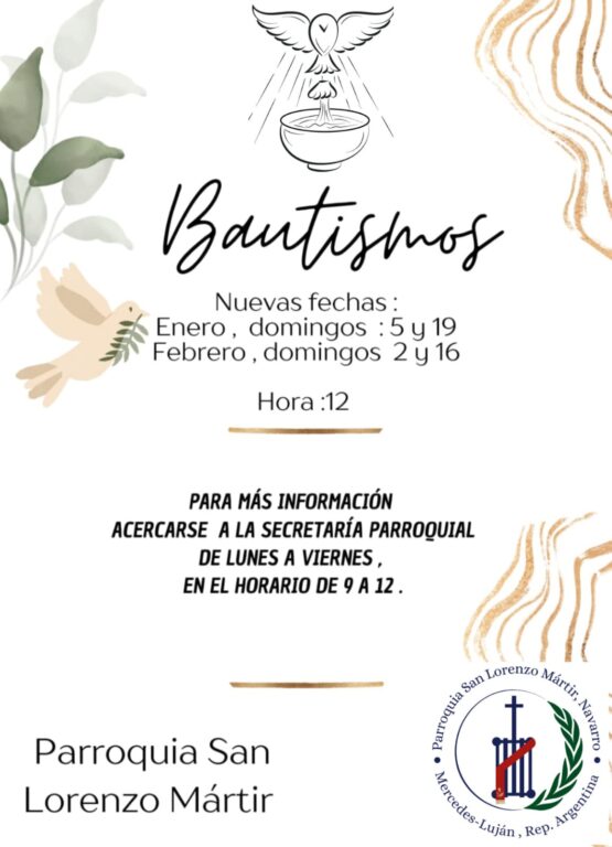 Para más información acercarse a la Secretaría Parroquial de lunes a viernes de 9 a 12.