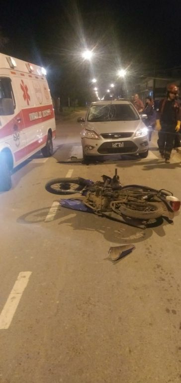 A las 6,05 nuestros bomberos acudieron al llamado por un choque entre moto y automóvil en calles 16 y 113, siendo derivado el conductor del rodado menor al hospital.