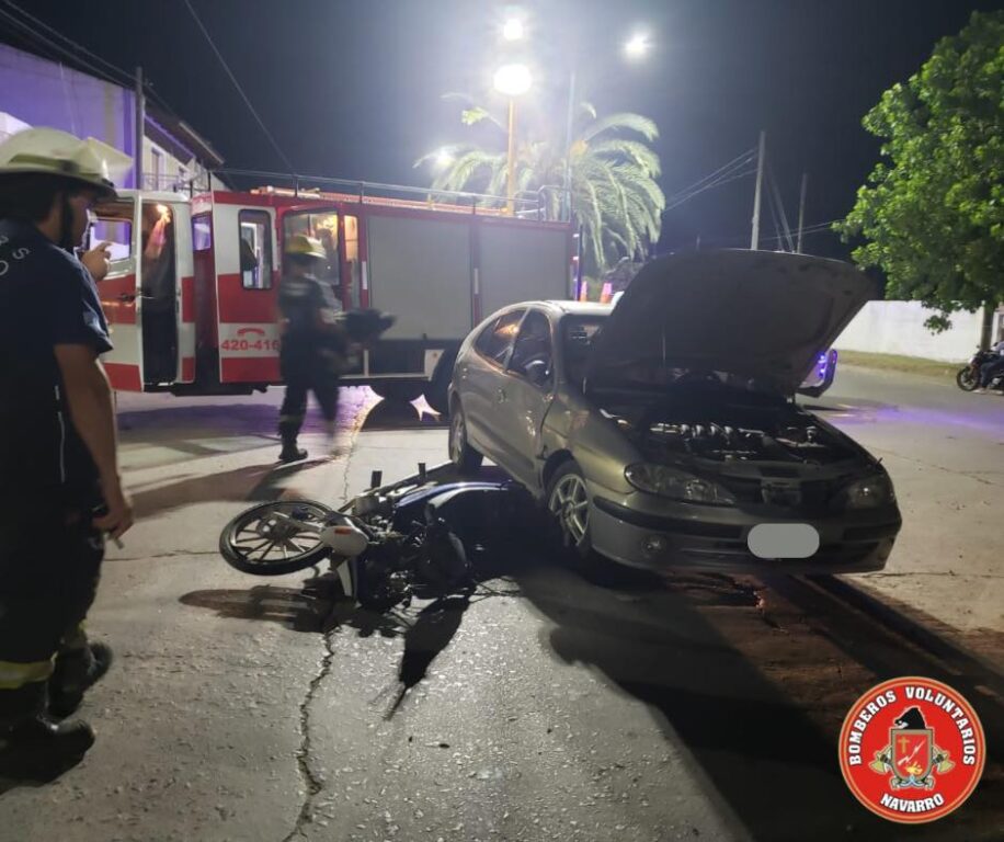 La salida de Bomberos de Navarro de las 0,25 de este viernes se debió al choque entre una motocicleta y un automóvil en la intersección de las calles 19 y 22. Tres unidades acudieron al lugar. No contamos por el momento con más información.