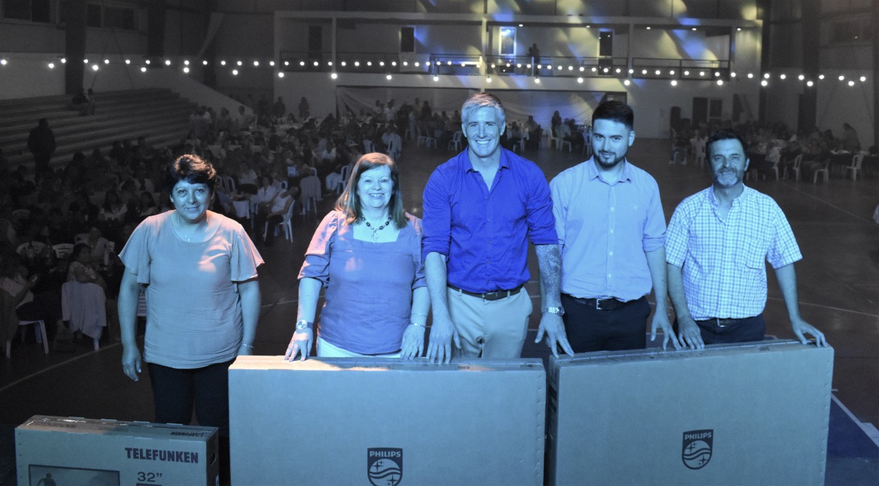 Antes del final llegaron los sorteos, una veintena de premios fueron recibidos por los presentes y el broche de oro fueron 3 televisores Smart led (1 de 32 pulgadas y 2 de 50 pulgadas). La noche la cerró a puro ritmo el grupo “La Cuartetera” que hizo bailar a los más de 500 empleados que se dieron cita para festejar el Dia del Empleado Municipal.
