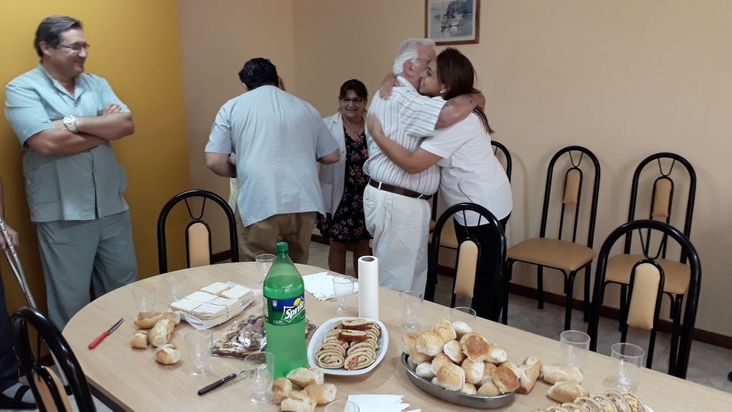 Sus colegas esperaban en el interior del Círculo y al ingreso del doctor, todos lo saludaron afectuosamente y le desearon lo mejor para la etapa que viene, ya que como todos saben, el Dr. dejó la actividad que ejerció durante 50 años. Posteriormente llegó uno de sus hijos y todos disfrutamos de una excelente picada. Fuimos invitados muy gentilmente a cubrir el evento y participar del agasajo, compartiendo un gratísimo momento con muy buena gente. Muchas gracias….
