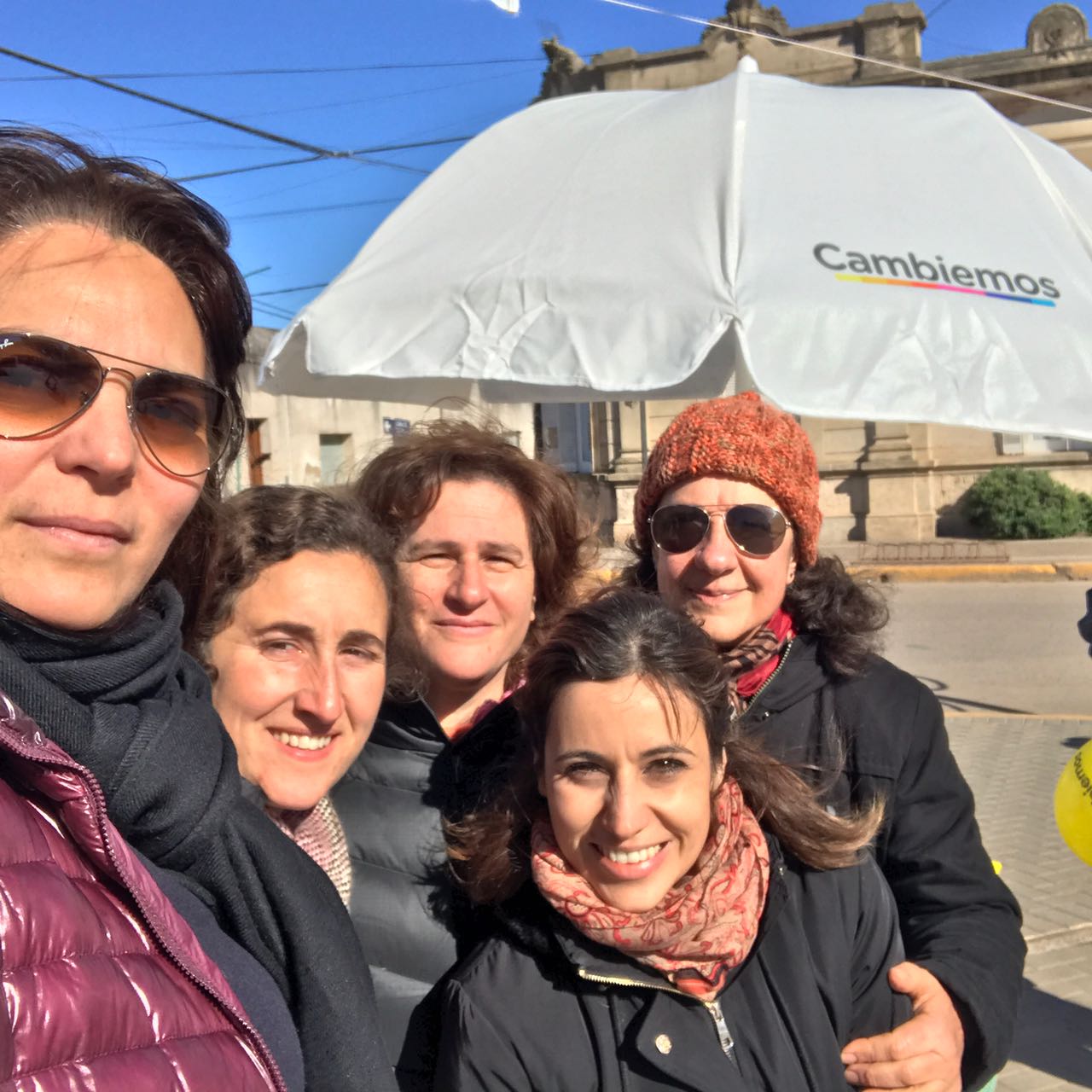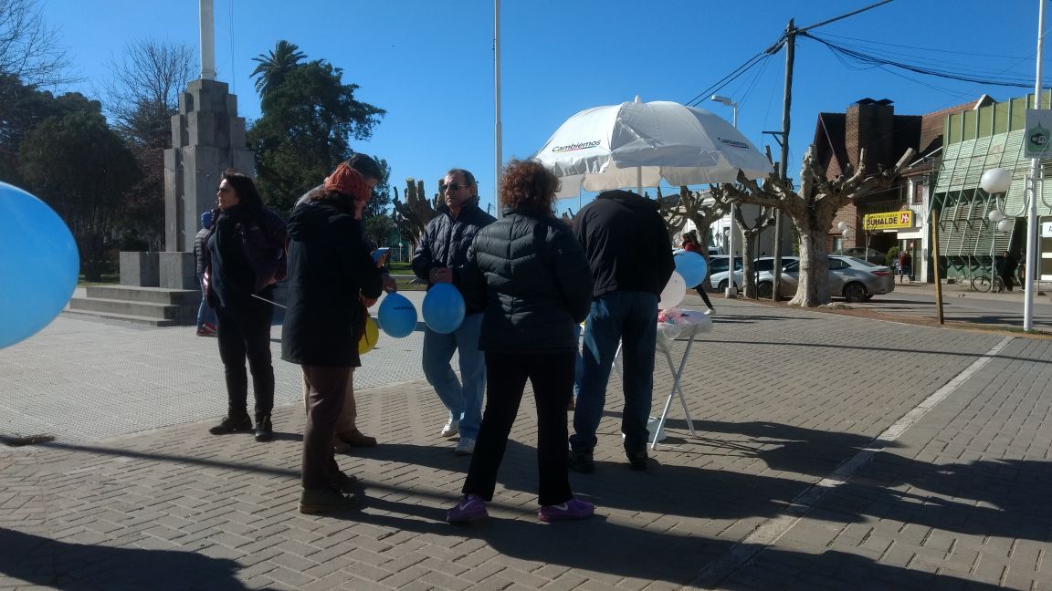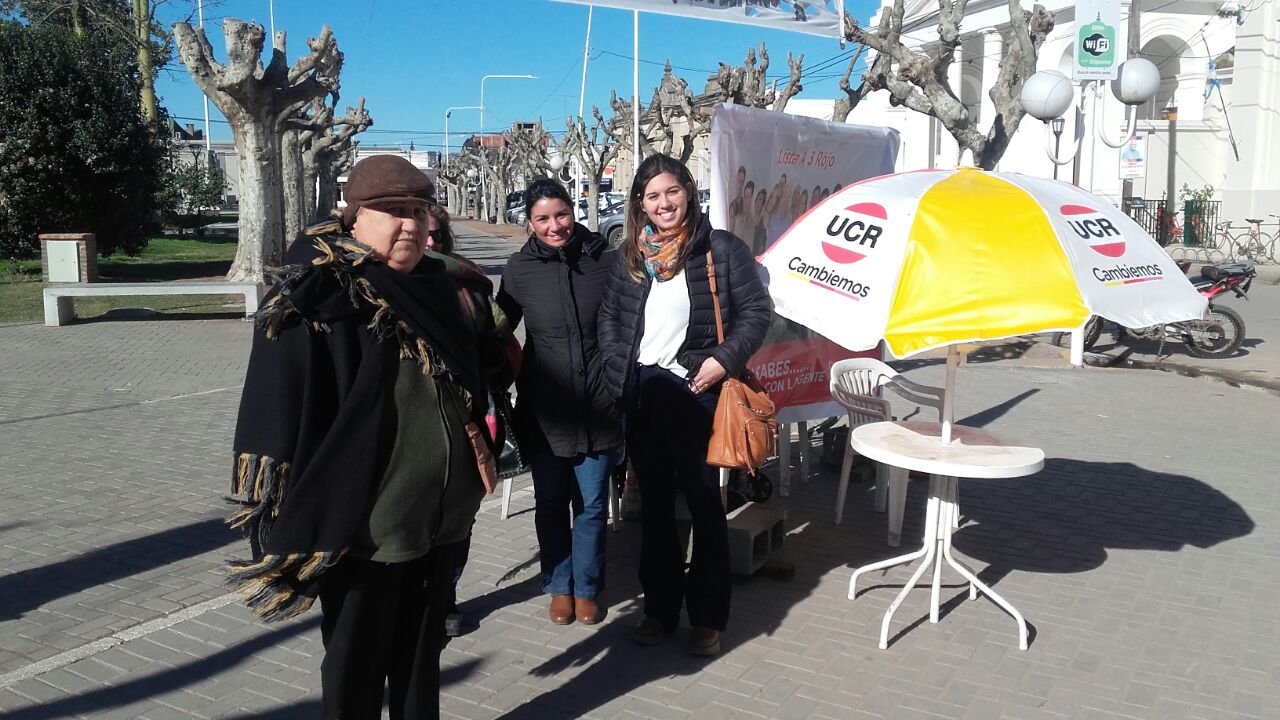 El espacio CAMBIEMOS, como es habitual, utiliza en sus campañas, no sólo los timbreos, sino lo que es ya un verdadero clásico, «las sombrillas». En estos días pudimos ver que el frío no fue impedimento para ambas líneas (PRO – C.C. y U.C.R.) ya que continuaron con su actividad en forma normal en las esquinas de 107 y 22 y 107 y 24. Seguramente en los días siguientes, ya veremos a los integrantes de las demás agrupaciones, realizando sus actividades.