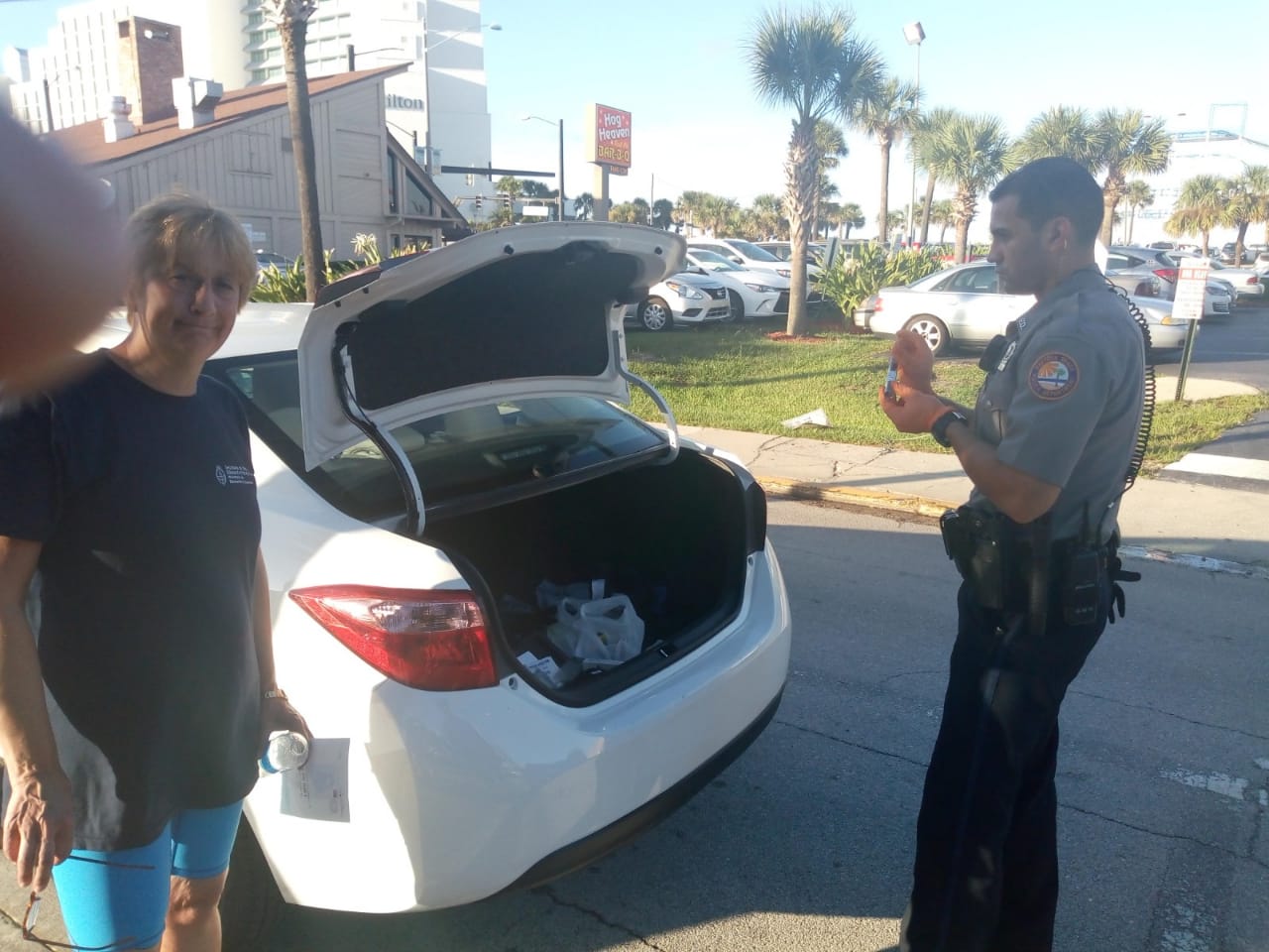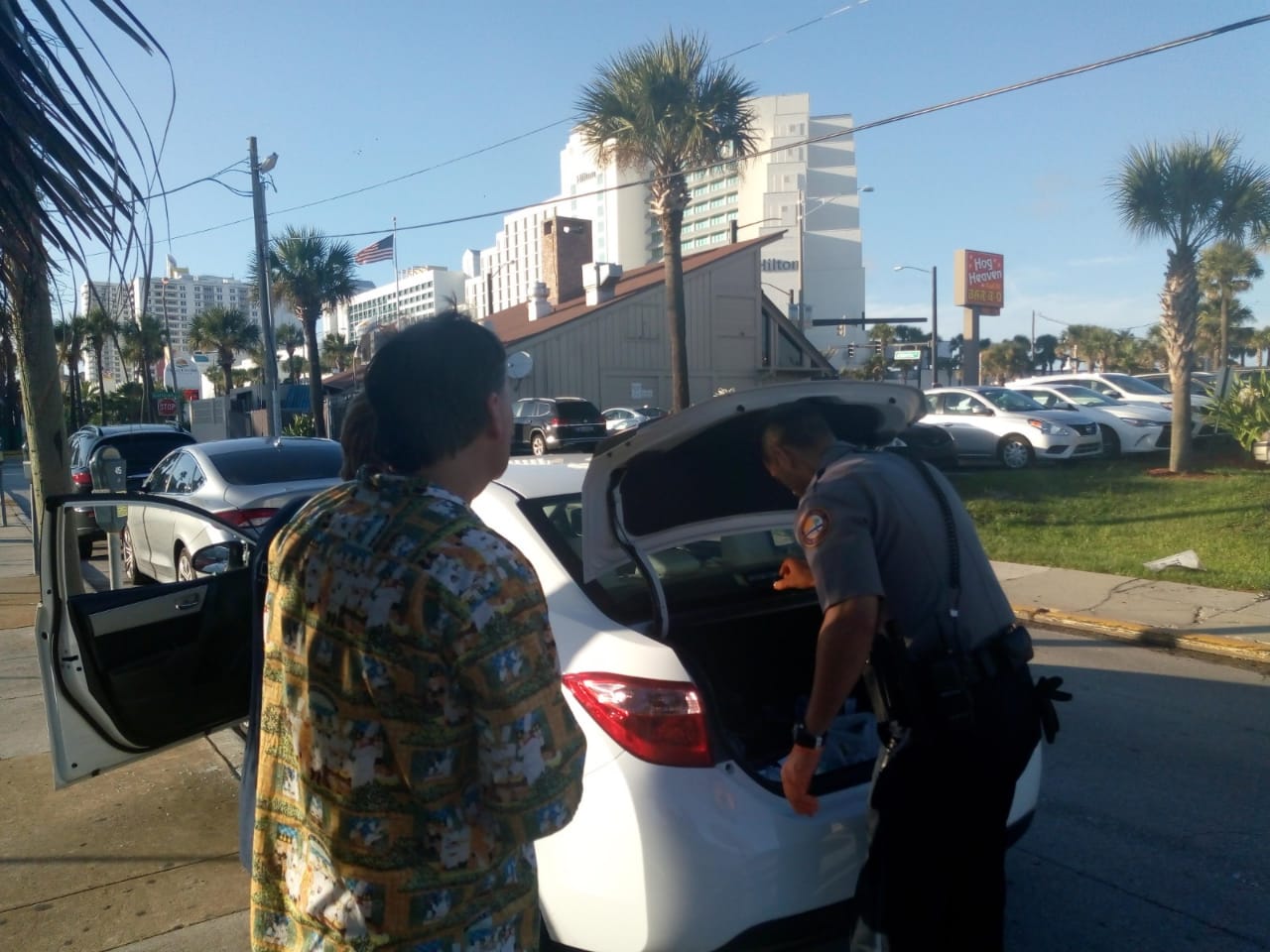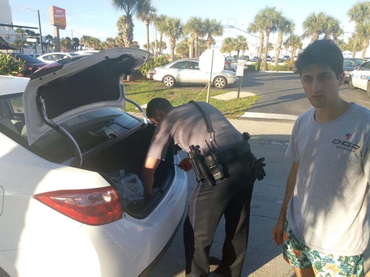 El auto estaba frente al hotel Hilton de Daytona según nos contaban. Si bien no hablamos con Gladys, su esposo nos dijo que está destrozada, y por lo que pudimos saber, mañana será día de trámites y denuncias, y en principio, se perdería la competencia más importante de  su vida.