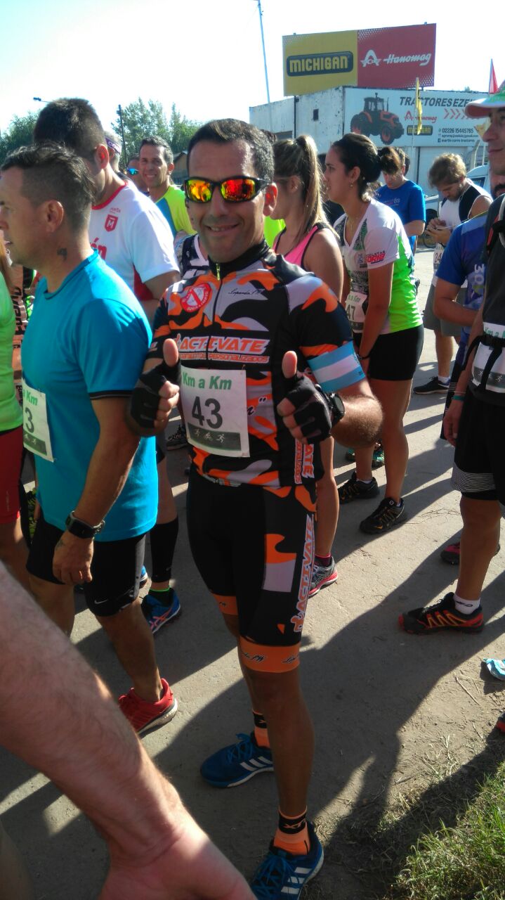 Sabido es que Darío Martínez, uno de los integrantes de Los Abelitos que habitualmente corre Rural Bike, es un atleta integral. Hoy volvió a demostrarlo corriendo el Duatlón Rural de Cañuelas. Largó a las 10 de la mañana sobre el Km. 66 (Puente Peatonal) de la Ruta 205. Se corrieron primero 4,5 kms a pie, luego 30 en bicicleta y se finalizó con otros 4,5 kms. a pie. Darío utilizó algo más de 1 hora 31 minutos para realizar el recorrido. Carrerón para el representante de Navarro que finalizó en la tercer posición en la categoría de 34 a 39 años. Grande Darío, a seguir así!!!