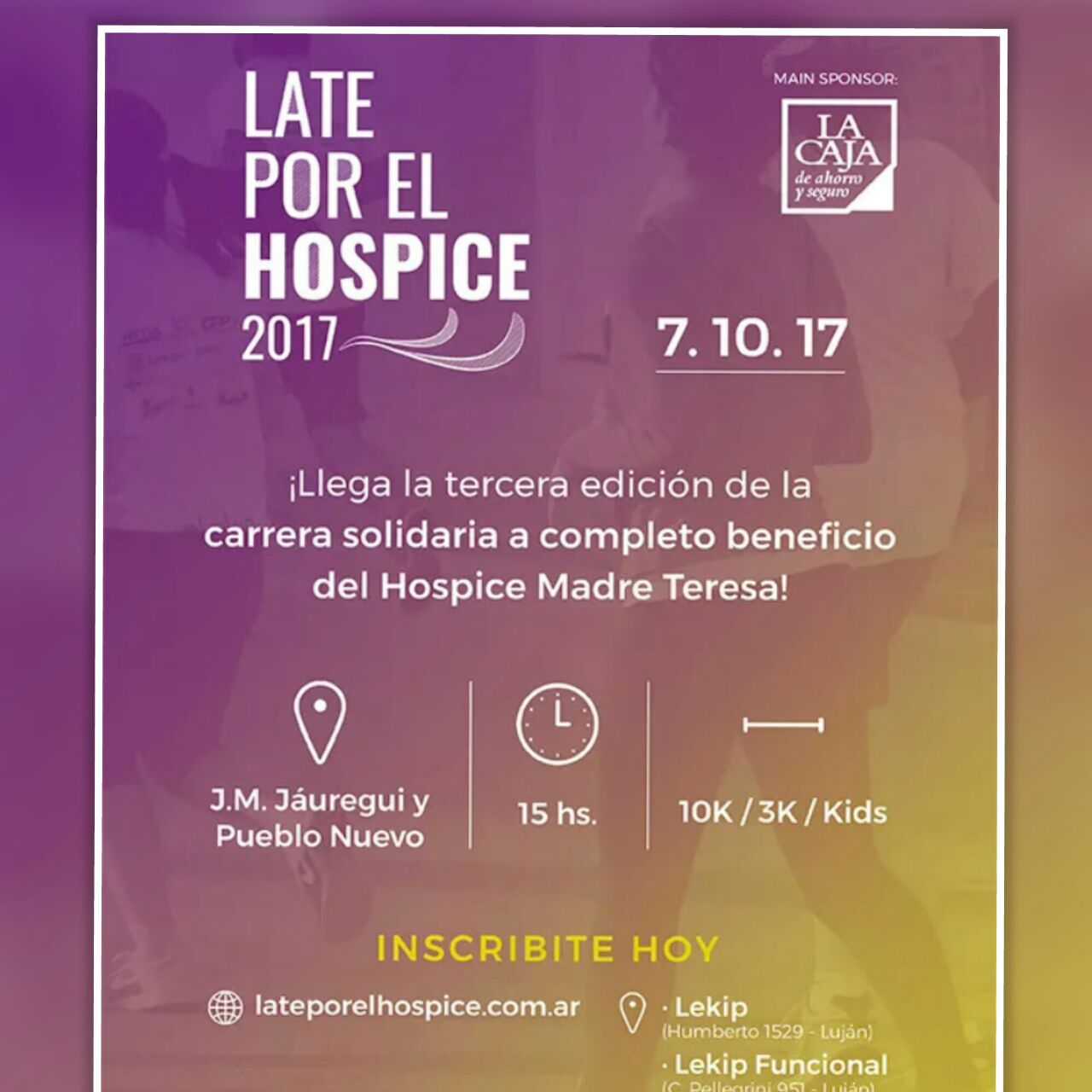 La competencia fue organizada por el Hospice Santa Teresa, Asociación Civil sin fines de lucro que brinda asistencia a personas con cáncer. Esta es la tercera edición de la carrera.