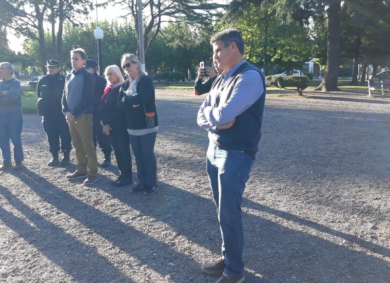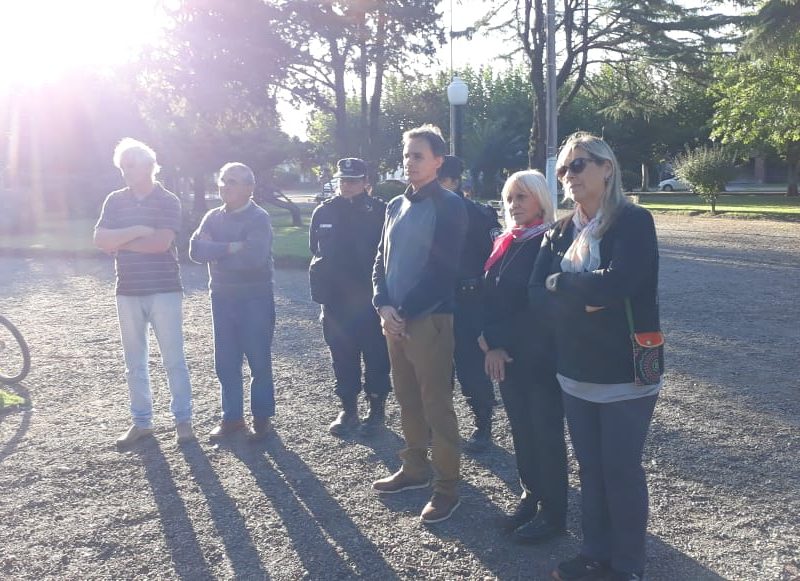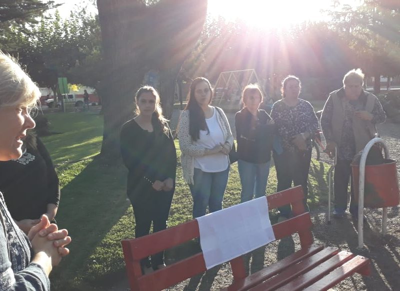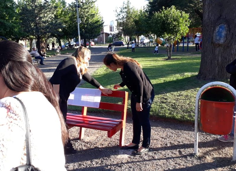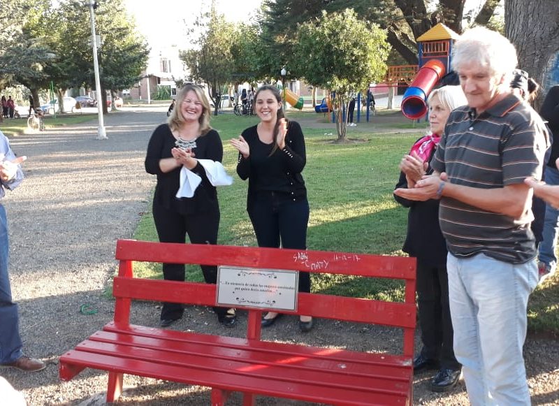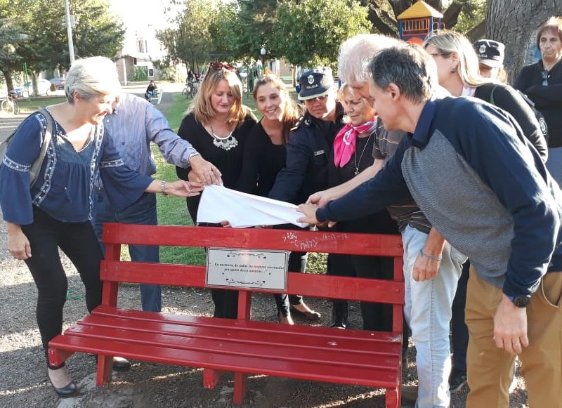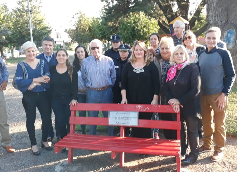 En la tarde de hoy se procedió a la inauguración oficial del «Banco Rojo» en la plaza Dorrego. Si bien esto ya se ha realizado en nuestro país y en muchas  partes del mundo, la concejal Marcela Dimitri presentó el proyecto de tenerlo también aquí en Navarro. El objetivo, de acuerdo a lo que expresaran, es el de concientizar a todos los que por allí pasen y lo vean, acerca de que llegó el momento de acabar con la violencia hacia las mujeres y con los femicidios. Es algo simbólico pero no por eso menos importante resaltaron. En el acto estuvo presente la diputada por Cambiemos Verónica Barbieri, la concejal Marcela Dimitri, los concejales de Cambiemos UCR, el secretario del Juzgado del Paz Letrado de Navarro, Dr. Guillermo Valverde, la consejera escolar Lizzie Kiernan, personal femenino de policía y público en general.
