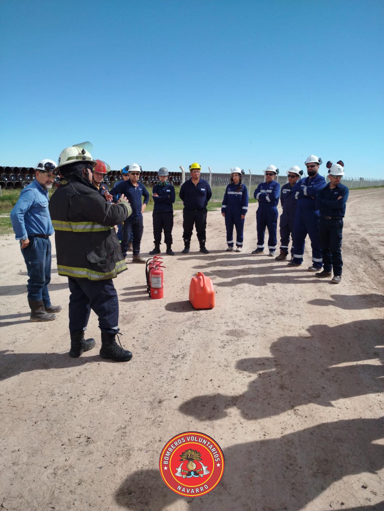 Los Bomberos Voluntarios de Navarro brindaron en el día de ayer, una capacitación en el uso de extintores al personal de la Planta Compresora de Gas (ubicada en el ctel. II, frente de la bajada. Ing. Williams) TGS Transportadora Gas del Sur – ENARSA. A su vez, aprovecharon según pudimos saber, la oportunidad para realizar una recorrida por todas sus instalaciones.