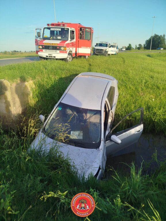 El llamado de los Bomberos Voluntarios de Navarro de la madrugada de este sábado a las 6,10, se debió al despiste de un automóvil Toyota Corolla. El accidente ocurrió en la rotonda de ruta 41 y acceso a ruta 40. El único ocupante del vehículo, oriundo de la localidad de Lobos, resultó ileso.
