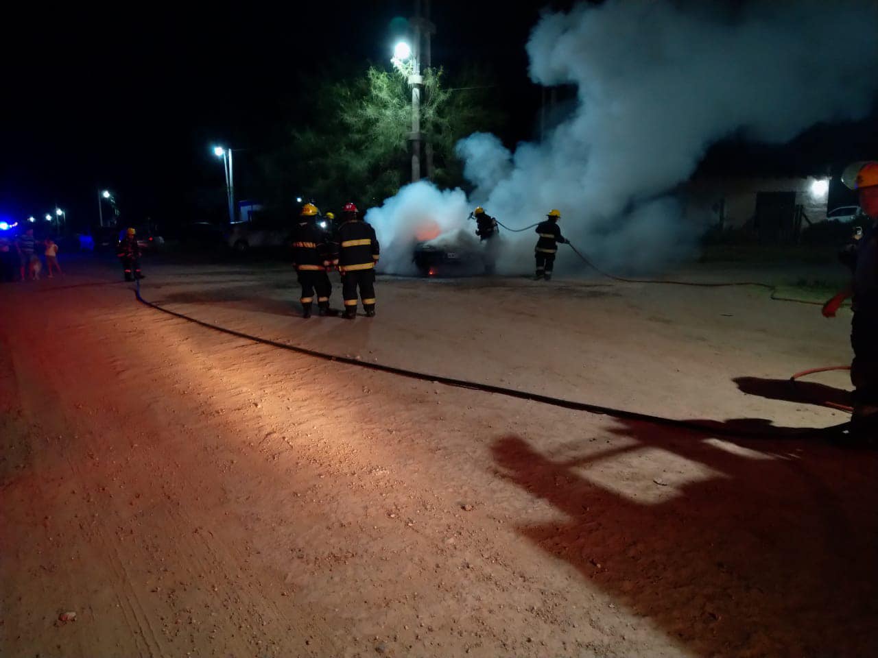 Bomberos en la madrugada. Incendio vehicular en 131 y circunvalación