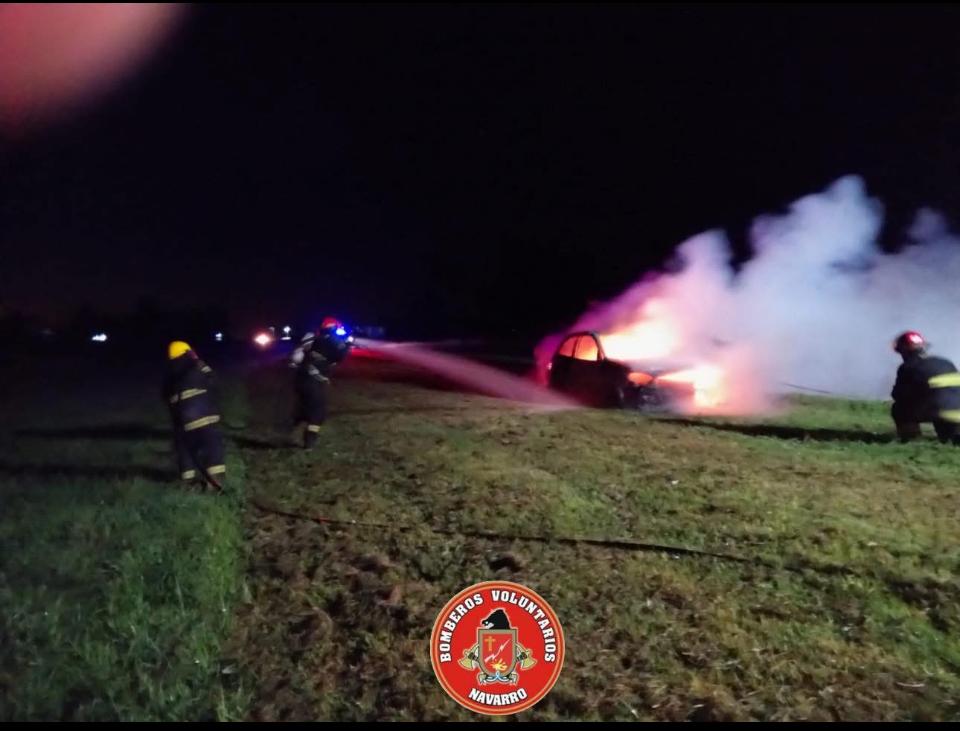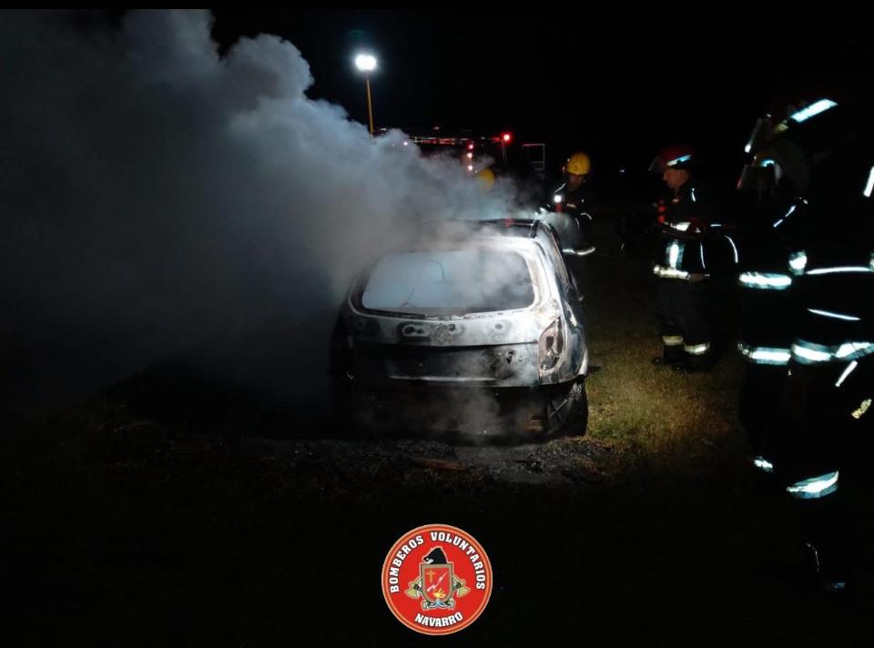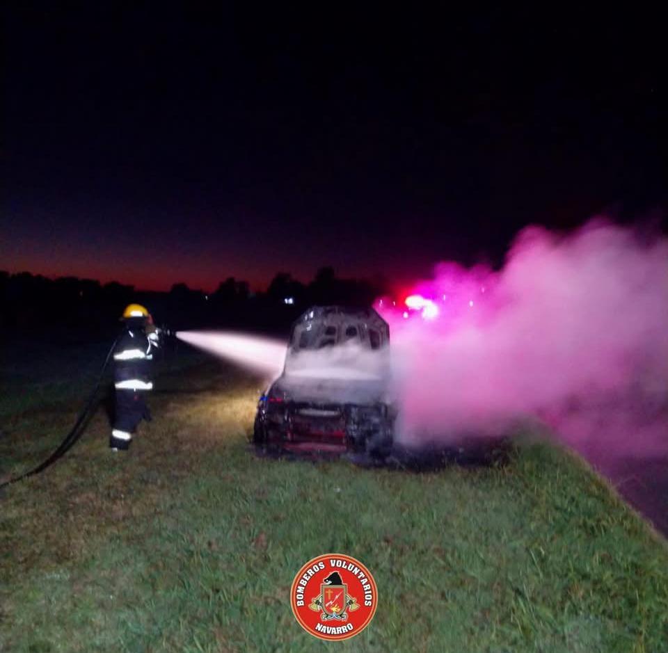 La salida de los Bomberos Voluntarios de Navarro de este domingo a las 5,57 se debió al llamado telefónico que indicaba sobre el incendio de un automotor en el acceso de rutas 40 y 47. Acudieron tres unidades y como vemos en las imágenes, los daños fueron totales. Es toda la información con la que contamos hasta este momento.