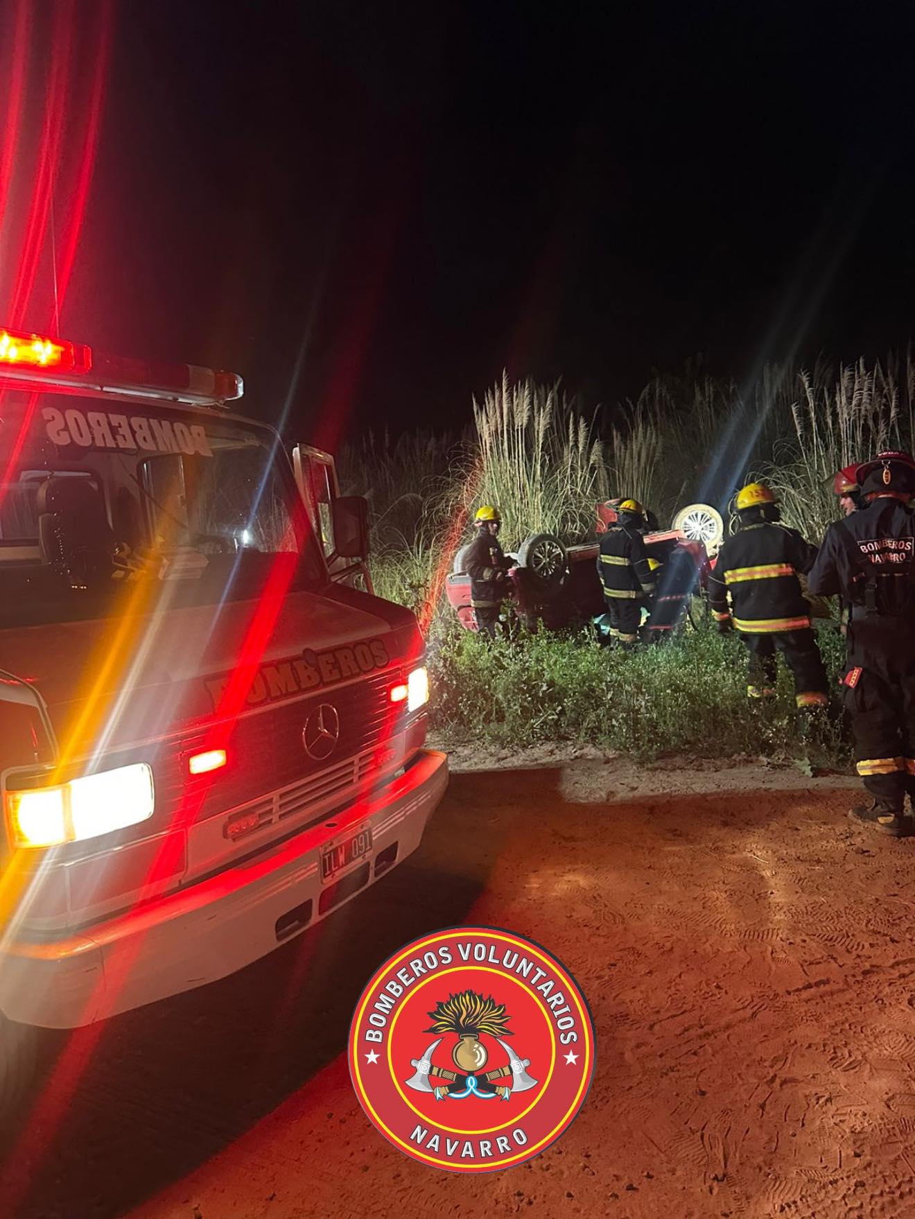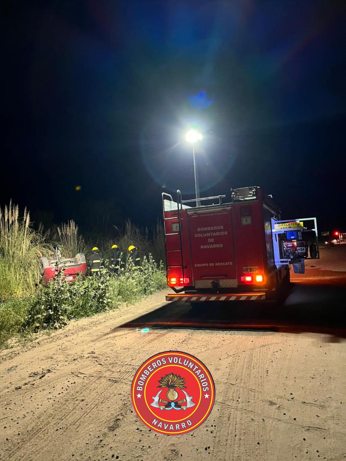 Siendo las 23,12 del sábado, 4 unidades de los Bomberos Voluntarios de Navarro salieron hacia el cuartel III de nuestro partido (ruta 44) a causa del vuelco de un Peugeot 208 en la zona de la «Y». Su único ocupante resultó ileso, de acuerdo a lo informado por la gente del cuartel.