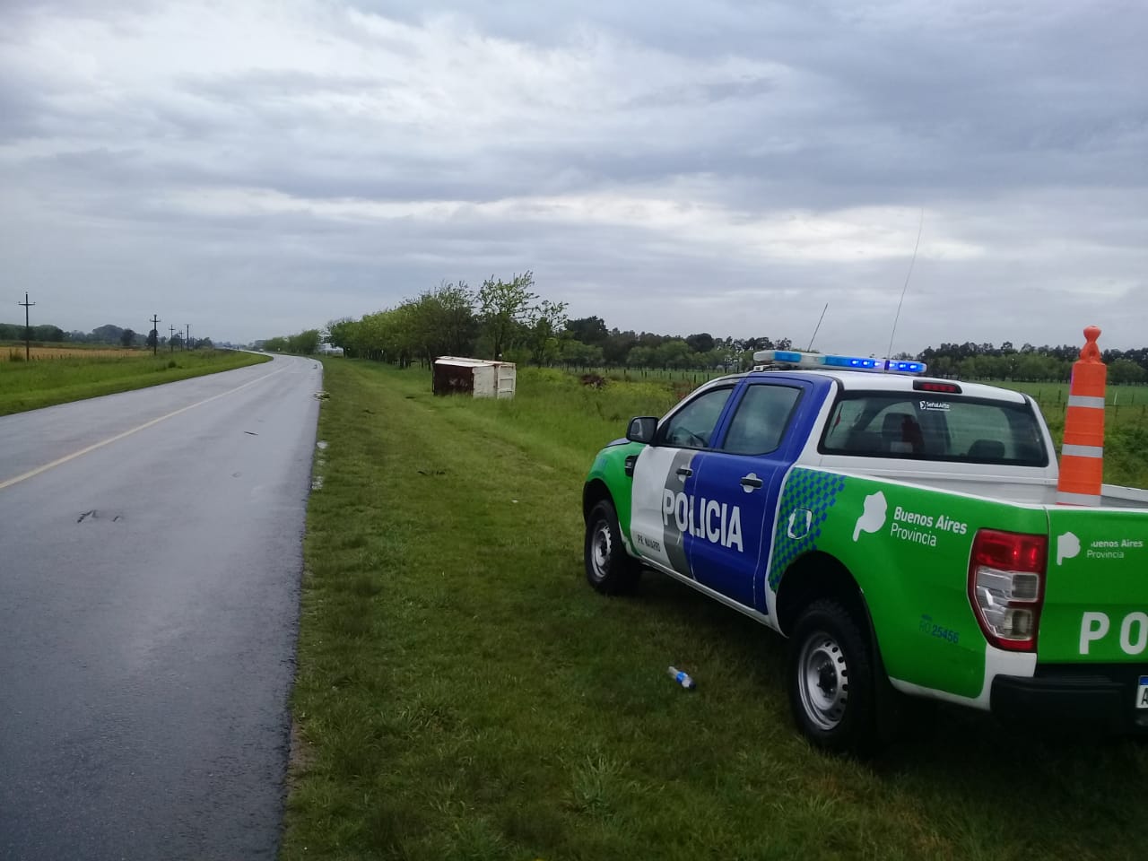 CPR NAVARRO. En razón de inclemencias climáticas en el partido, realiza distintas tareas de prevención sobre ruta 41 y zona rural, en virtud de distintos vehículos que se hallan encajados a la vera de la mencionada ruta. Fdo. Miguel J Chulia. Comisario.