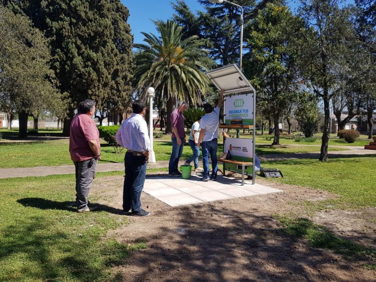 Informe municipal. Colocación de estación solar para carga de celulares en Villa Moll