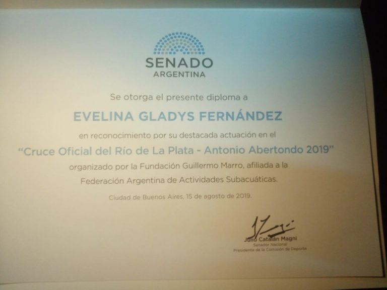 El Senado reconoció hoy a Gladys Fernández por el Cruce del Río de La Plata 2019