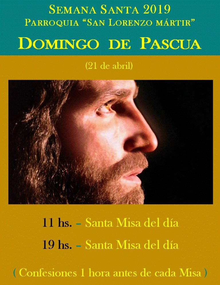 14 de abril: 10,30 Santa Misa de la Pasión del Señor (inicia en la terminal calle 5 y 24) 19 Santa Misa de la Pasión del Señor Bendición de ramos en todas las misas. 18 de abril (Jueves Santo) 17,30 a 18,30 Confesiones en el templo 19 Santa Misa de la Cena del Señor Adoración