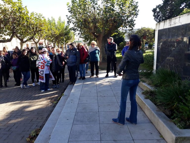 Ni el intenso frío paró a Roxana. El sábado por la mañana pudimos ver cómo, frente a la Parroquia San Lorenzo, se les explicaban distintos temas a un contingente de turistas y estudiantes de turismo que llegaron a nuestra localidad. En el momento que estuvimos allí, pudimos ver a los visitantes muy compenetrados con un