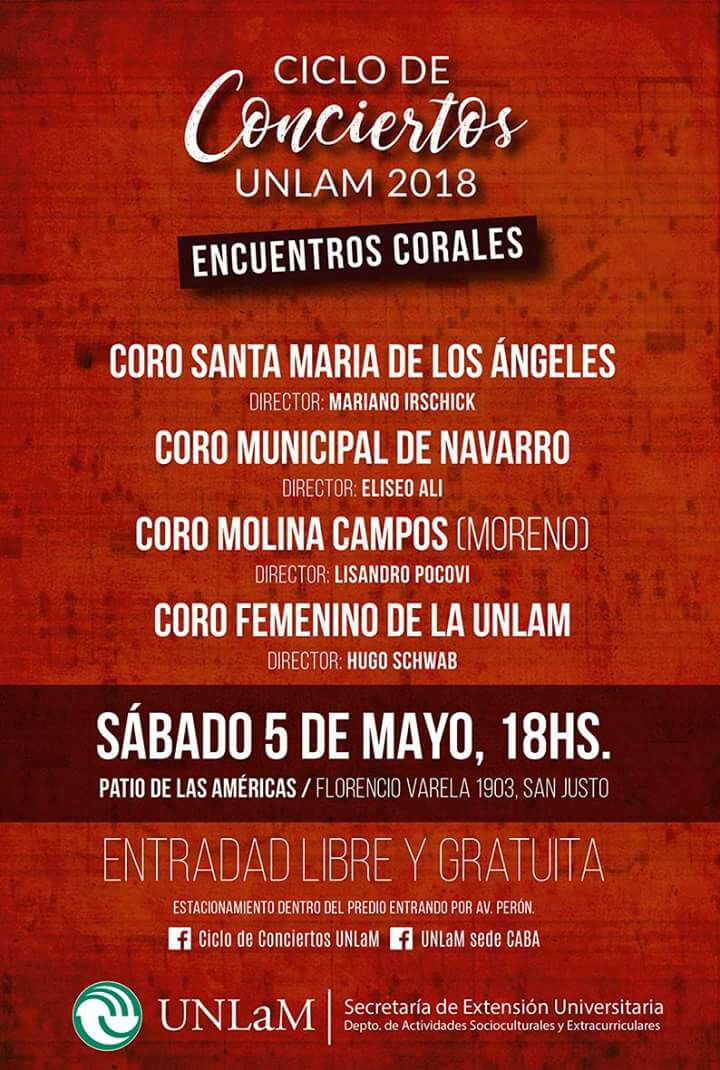 El Coro Municipal de Navarro estará presente en el Ciclo de Conciertos UNLAM 2018