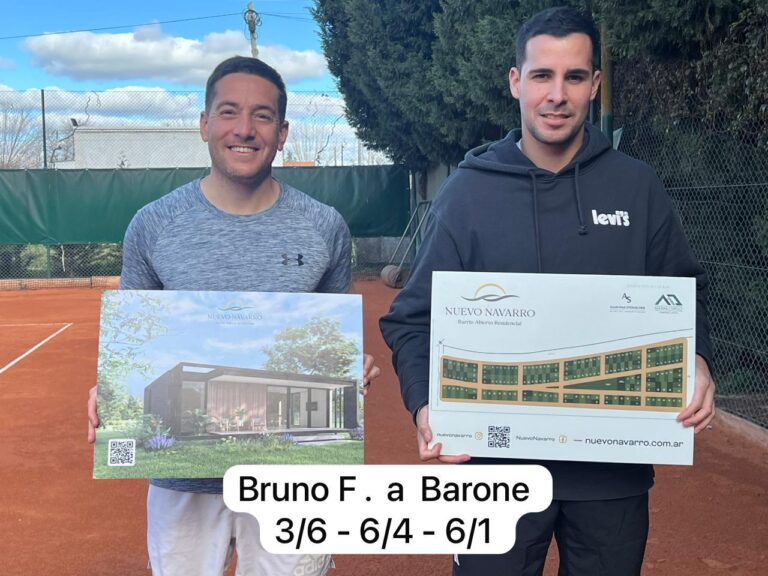 Se sigue jugando el torneo de tenis de Primera Caballeros en Navarro Tenis Club por la Copa Nuevo Navarro. Hoy se disputaron dos partidos con los siguientes resultados: Francisco Bruno a Barone Agustín 3-6 6-4 6-1.- Felipe García a Bernardo de Agustini por 6-3 6-3.- El torneo continuará el próximo fin de semana completando los