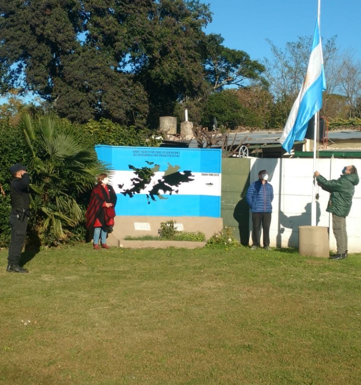 Representantes de la localidad de J.J. Almeyra, izaron la Bandera en el monumento en...