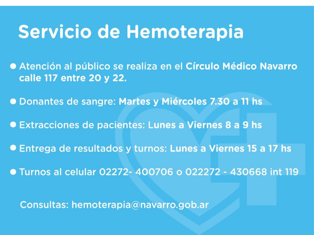 Información importante sobre el funcionamiento del servicio de hemoterapia
