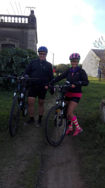 Hoy, estuvieron charlando con una vecina de Villa Moll, (a quien le agradecemos la imágen), Horacio y Claudia. Ellos son de Capital Federal y dicen practicar «Cicloturismo Rural».