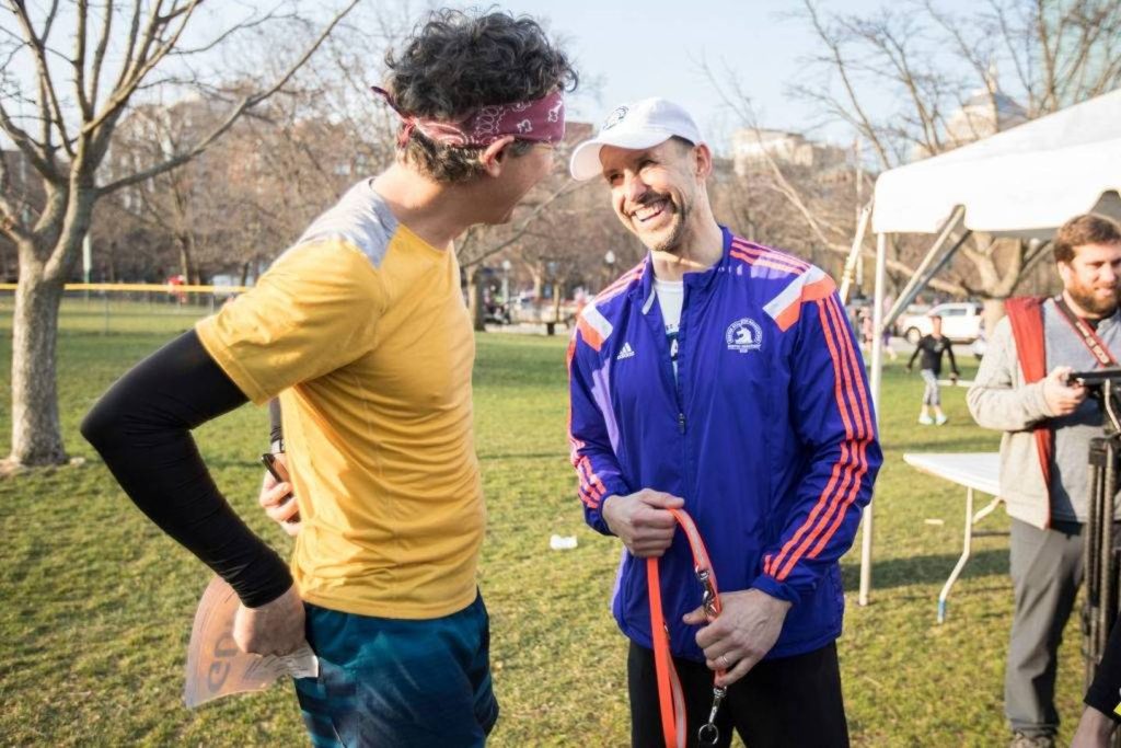 Luego me enteré de correr con guías humanos y decidí intentarlo. Me dio un sentido de pertenencia, sujetando una correa y siguiendo al corredor guía frente a mí. Incluso clasifiqué para los maratones de Nueva York y Boston cinco años seguidos. Pero a pesar de lo agradecido que estaba con mis guías humanos, quería más independencia. Entonces, en 2019, decidí correr el primer medio maratón asistido solo por perros guía.