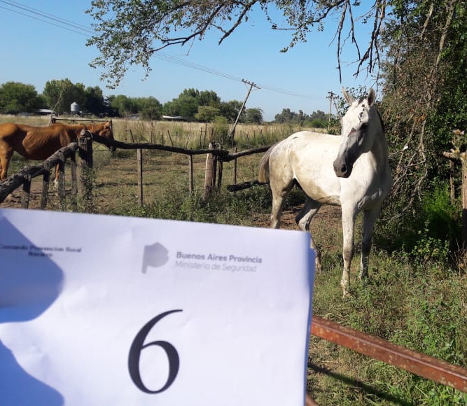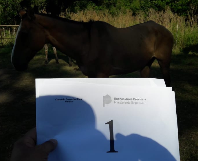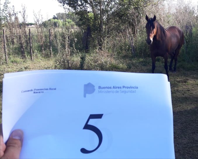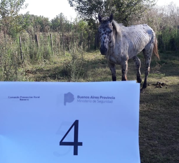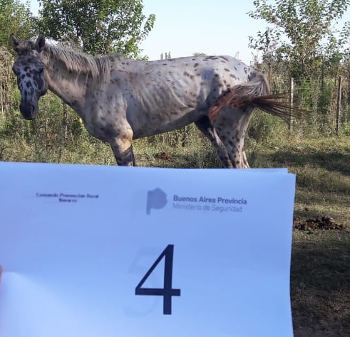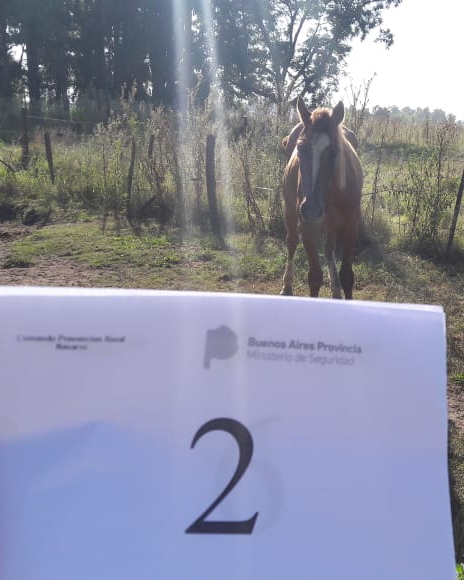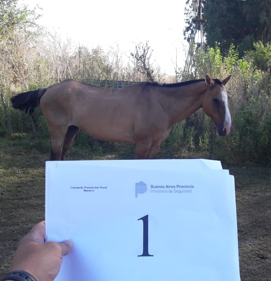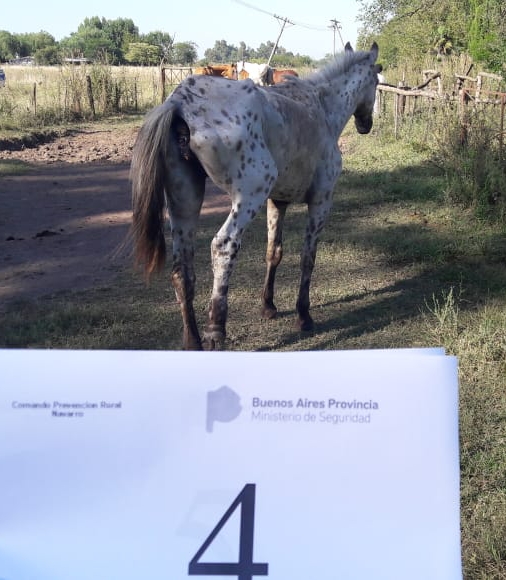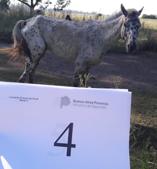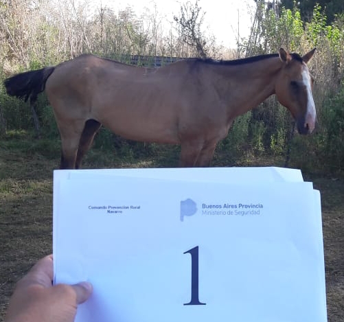 Comando de Prevención Rural Navarro, en relación a I.P.P. N° AVERIGUACIÓN DE ILÍCITO, con intervención de la Ayudantía Fiscal Navarro, U.F.I. N° 4 y Juzgado de Garantías N° 2, Del Departamento Judicial de Mercedes, solicita se difunda por distintos medios de comunicación los equinos que se detallan a continuación: 1) Equino, pelaje gateado macho, mala cara de cabos negros, de aproximadamente 7 o 8 años de edad, de medida del piso a la cruz de 1,55 metros aproximadamente, de unos 400 kilogramos aproximadamente; 2) Equino pelaje alazán hembra, calzado de tres patas, pancha particular en la frente lucero, de medida del piso a la cruz de 1,50 aproximadamente y de unos 380 kilogramos aproximadamente; 3) Equino pelaje alazán macho lucero, con mancha particular en las dos partas de atrás, de aproximadamente 350 kilogramos de 1,5 metros del piso a la cruz; 4) Equino pelaje pintado negro, sexo hembra teniendo este una malformación de chico en una de sus patas más precisamente la trasera derecha, de 1,5 metros de altura de la cruz al piso aproximadamente, cabos negros, de unos 250 kilogramos aproximadamente; 5) Equino pelaje zaino colorado, sexo hembra, de cabos negros, de -aproximadamente 1,55 metros del suelo a la cruz de entre 420 o 430 kilogramos de peso aproximadamente; 6) equino pelaje tordillo negro, sexo macho, de 1,58 metros del piso a la cruz, no posee manchas particulares y de un peso aproximado de 400 kilogramos aproximadamente, todos estos orejanos de marca y señal. Esto a los fines de establecer origen y posibles propietarios si los hubiere del o los equinos interdictos antes mencionado. Así mismo se agrega placas fotográficas para una mejor apreciación de los mismos. De surgir novedad se deberán comunicar con el número de abonado 02227-15442599 – 011-1522705385, o al E-Mail cprnavarro@gmail.com, y/o en dicho Comando sito en Ruta Provincial Nro. 41 Km. 150 de la localidad de Navarro (B)., como así también al teléfono de esta Coordinación Zonal de Seguridad Rural Chivilcoy numero de telefono 023246-429390, sita en calle El Grito de Alcorta Nro. 12, Chivilcoy, a la dirección de e-mail coordruralchivilcoyoper@gmail.com.-