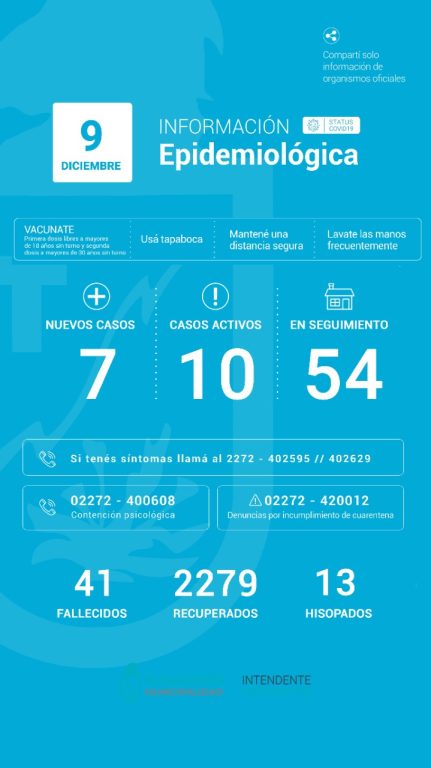 COVID 19. Estado de situación en Navarro al 09/12. 7 nuevos casos