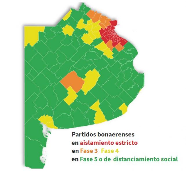 Un total de 72 municipios del interior de la provincia de Buenos Aires está en la fase 5 del aislamiento, con la mayoría de sus actividades habilitada, en el marco de la pandemia de coronavirus, mientras que las 35 ciudades que integran el AMBA ingresaron a una cuarentena estricta, de acuerdo con el protocolo de prevención que el gobierno bonaerense elabora en forma semanal.