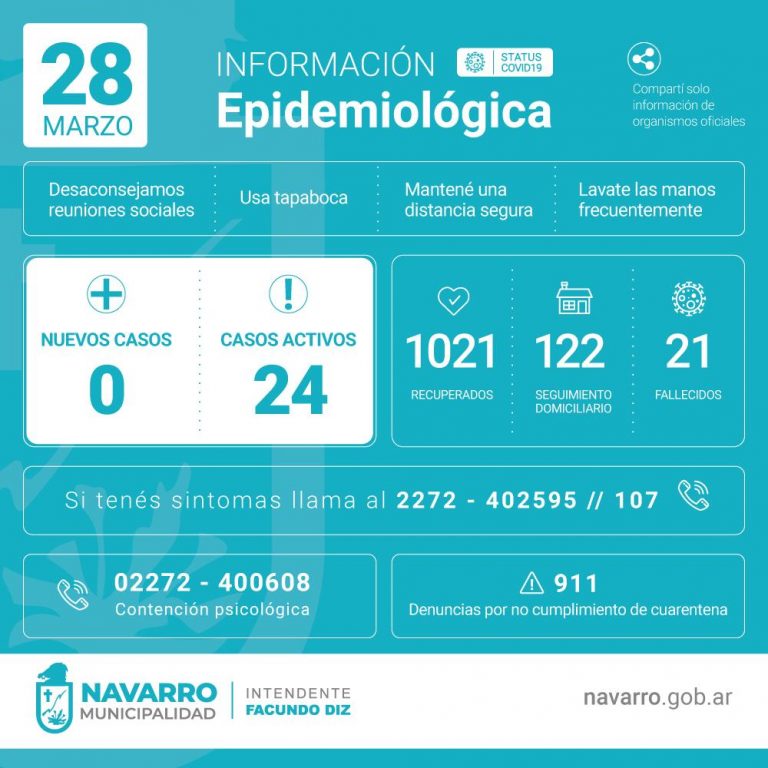 COVID 19. Sin casos hoy en Navarro. Quedan 24 activos