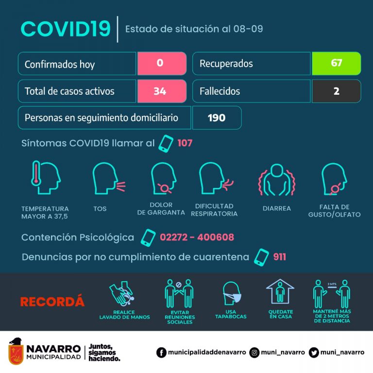 Hace minutos recibimos en nuestra mesa de trabajo, el cuadro con el estado de situación del COVID 19 en Navarro.