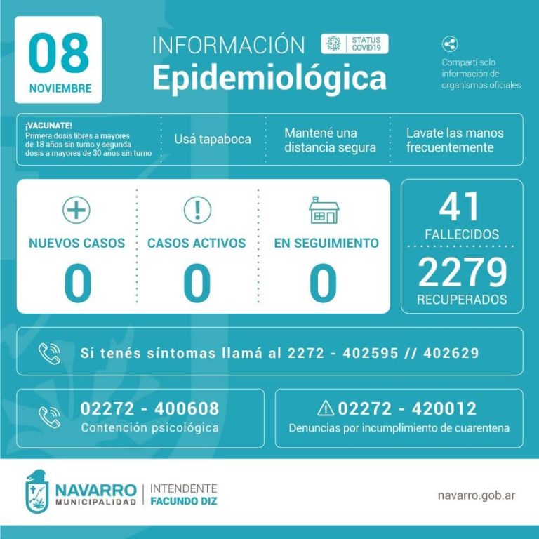 COVID 19. Triple 0 para Navarro. Sin casos nuevos, ni activos, ni en seguimiento
