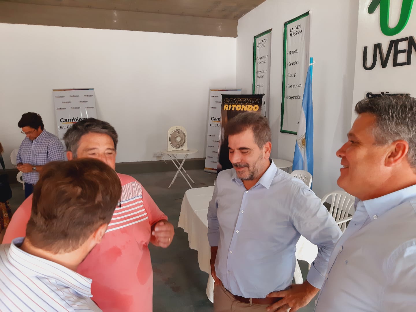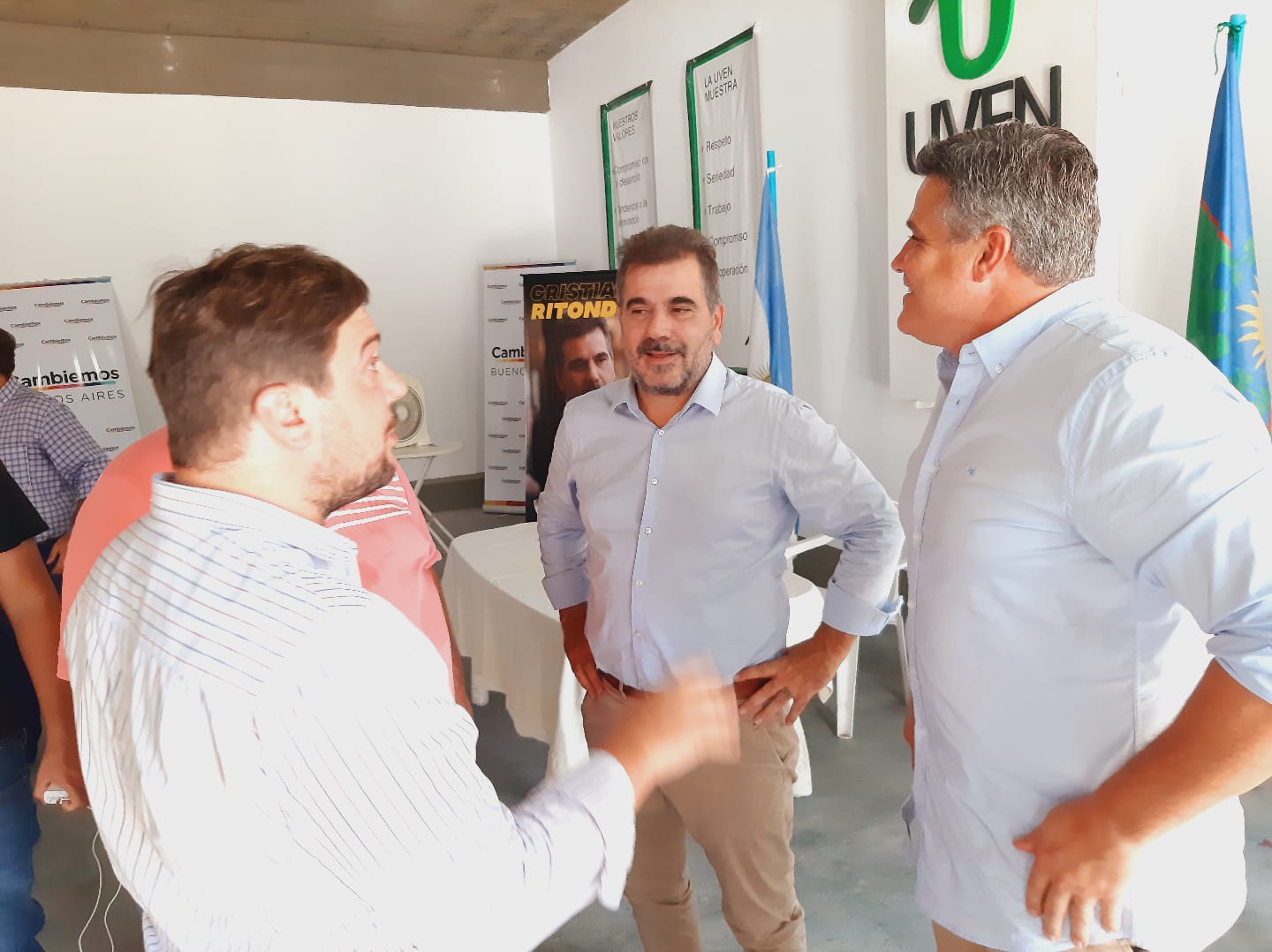 Hoy a las 13 llegó a nuestra ciudad, tal como se lo había anticipado, el diputado y ex Ministro de Seguridad de la provincia de Buenos Aires, Cristian Ritondo. Uno de los pre candidatos a gobernar por Juntos la provincia de Buenos Aires, arribó al local de la UVEN PRO y estuvo acompañado por Sebastián Etcheverry y Emiliano Terrile, quienes como integrantes del espacio, acompañan su pre candidatura. Entre los presentes también estuvieron, el presidente del comité local de la UCR, Nelson Morra, el concejal Mateo Natalini, el presidente de la Sociedad Rural Eduardo Caruso y un grupo de vecinos e integrantes del PRO local.