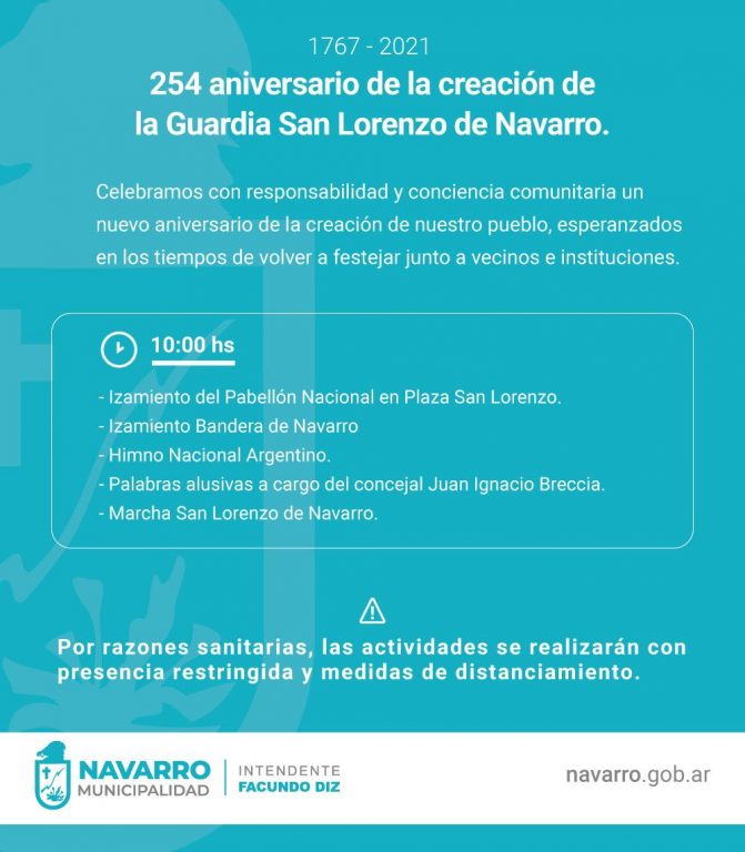 Celebramos con responsabilidad y conciencia comunitaria un nuevo aniversario de la creación de nuestro pueblo, esperanzados en los tiempos de volver a festejar junto a vecinos e instituciones.