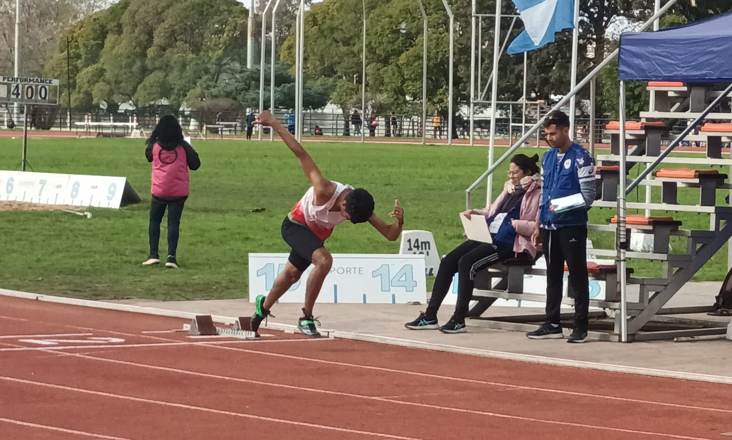 Agustín Cuello debutó en esta pista y, además, como atleta federado, y lo hizo en dos pruebas en la categoría u16: 80m llanos, con 10″28, donde fue 8vo. y en 600 m., con 1’41″08, donde fue 9no. En ambas pruebas estableció nuevos récords personales.