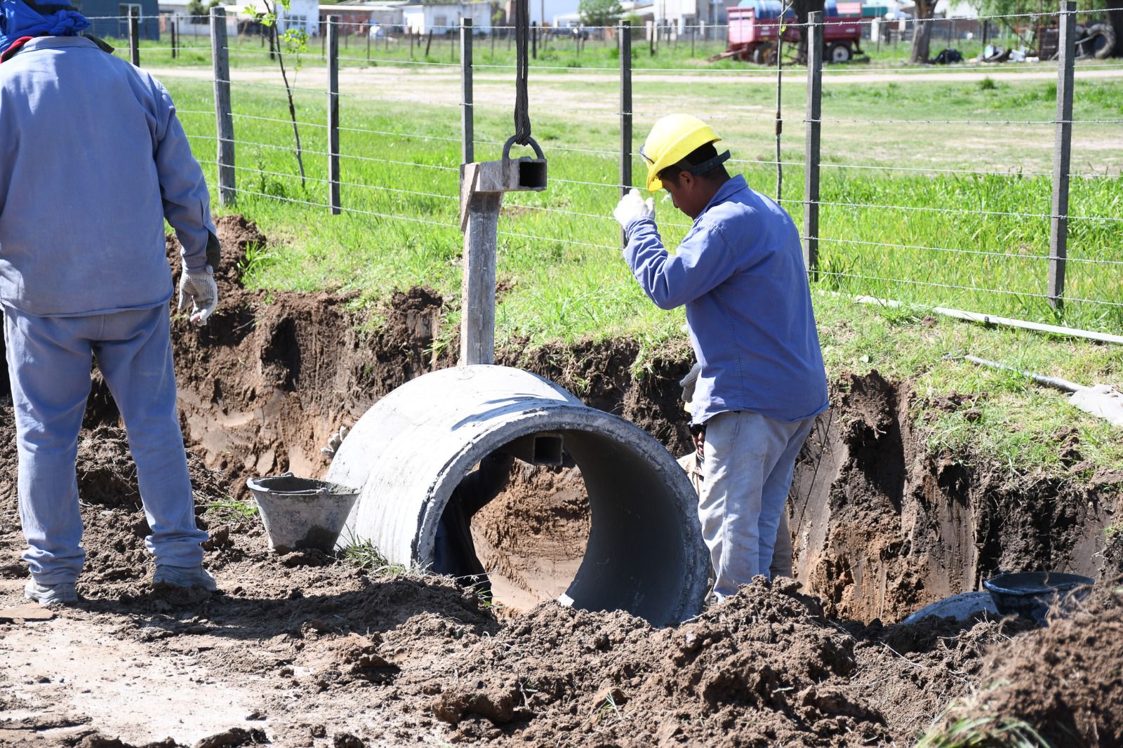 La obra del pluvial de calle 46 sigue su curso. Esta semana el equipo de trabajo realiza tareas de colocación de caños a la altura del Centro de Desarrollo para la Comunidad. La misma prevé que zonas donde generalmente se inundaba o juntaba agua tras fuertes lluvias ya no tengan ese problema.