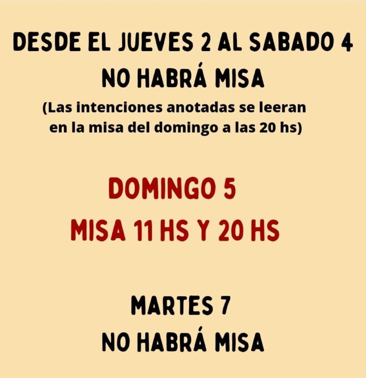 Desde el jueves 2 al sábado 4 inclusive no habrá Misa