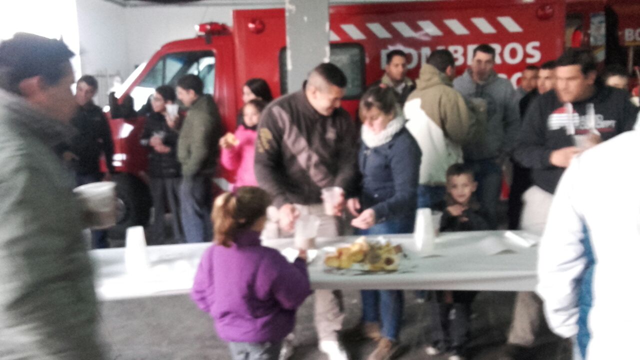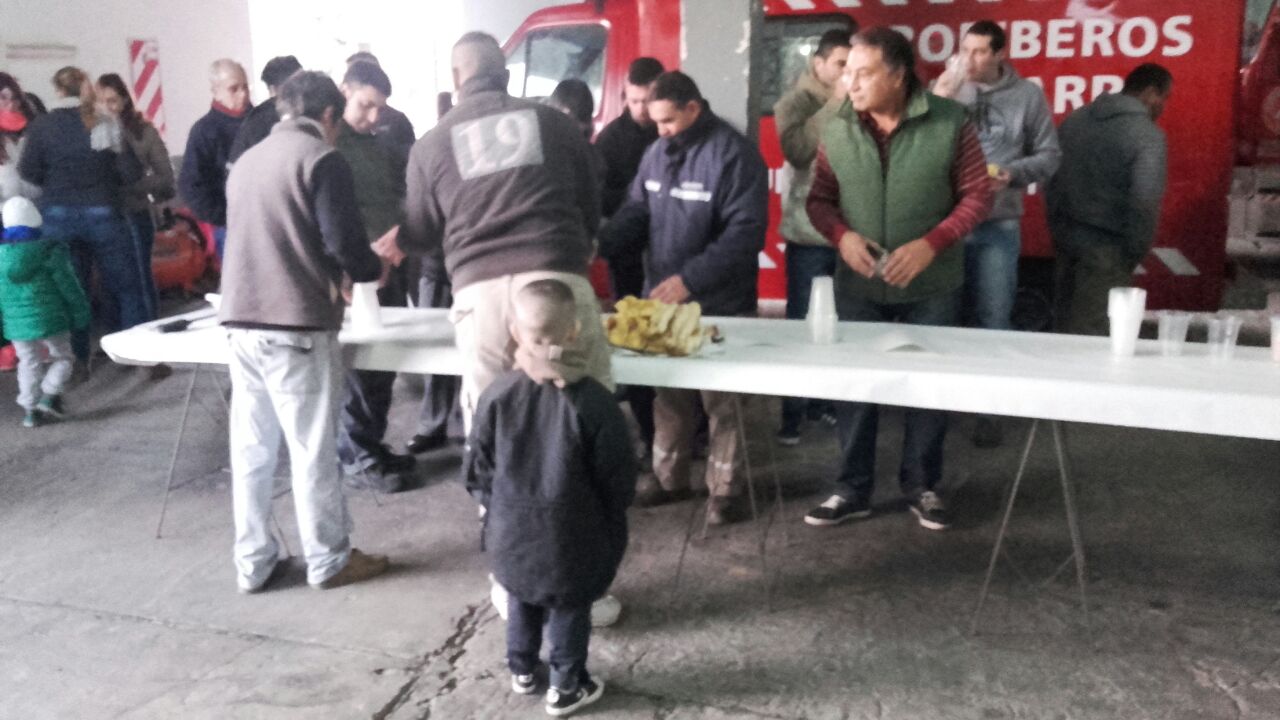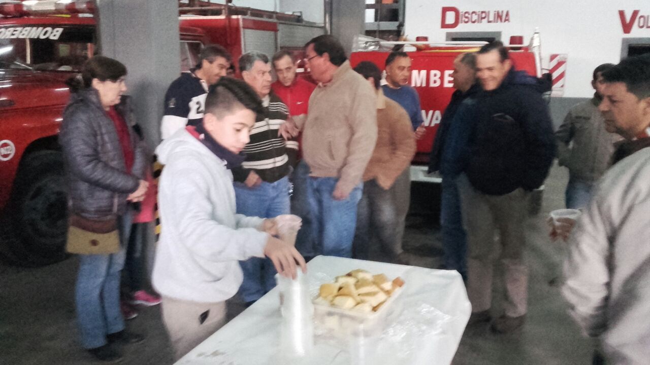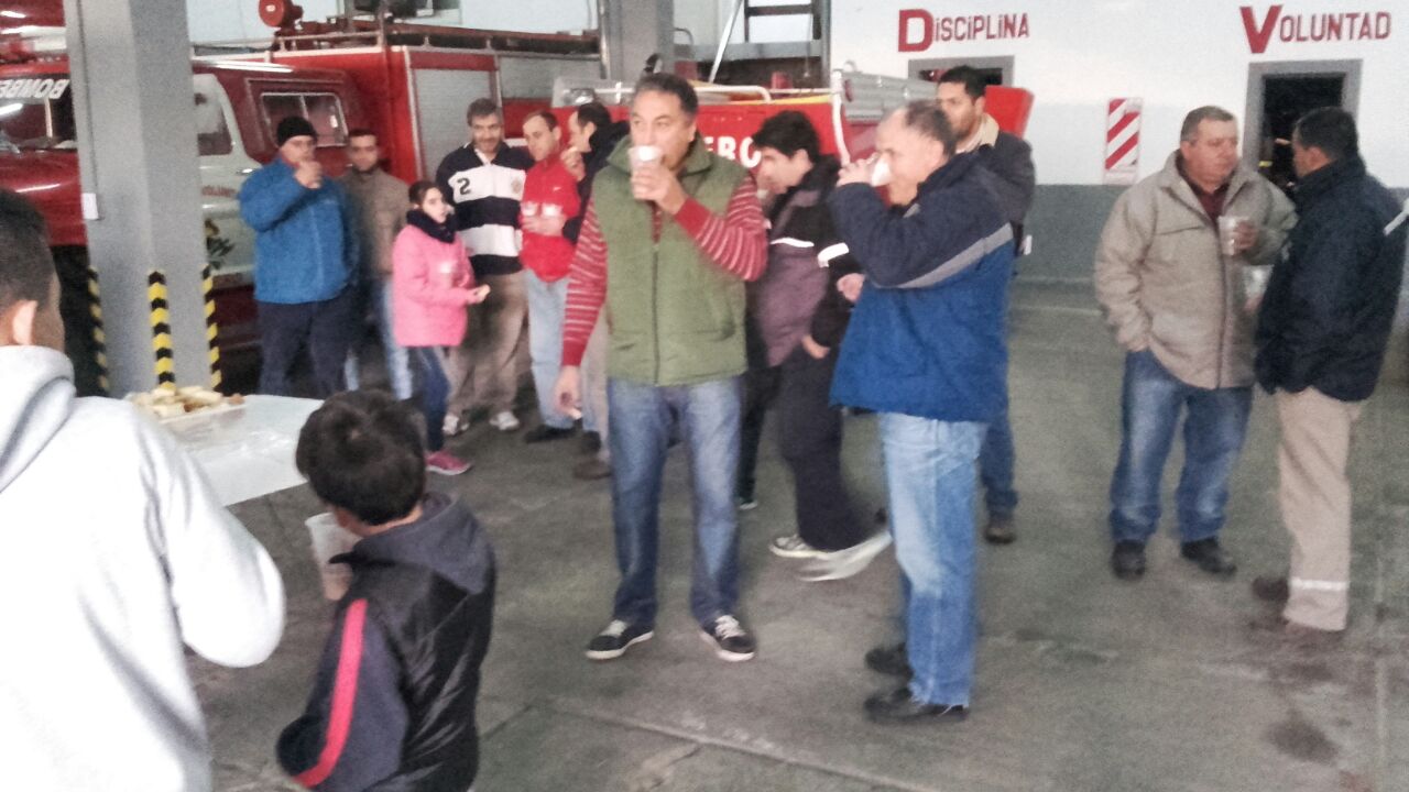Hoy a las 8, como ya es habitual, todos los Bomberos Voluntarios se dieron cita en el Cuartel Central, para dar comienzo a los festejos de su día. Puntualmente a las 8, tocó la sirena y luego todos se dispusieron a disfrutar de un riquísimo chocolate. Lo lindo de esto fue el clima familiar que se vivió ya que muchos fueron acompañados de sus hijos y familiares. Cabe destacar también que los que fuimos a cubrir la nota, también fuimos invitados a tomar chocolate. Buen arranque de mañana. Gracias por todo lo que dan por nosotros!!!