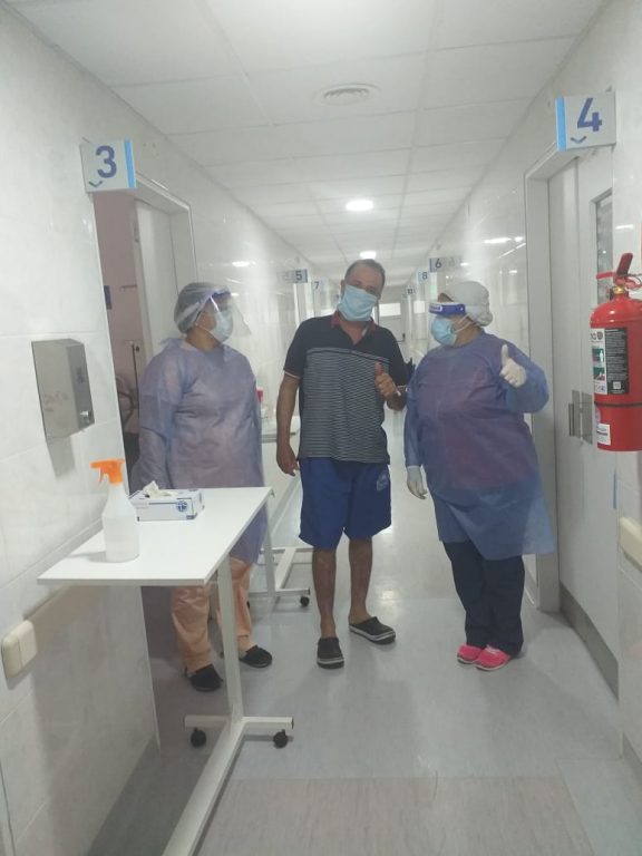 Previo a armar la nota, como corresponde, obtuvimos la respectiva autorización para publicar la imagen recibida del primer paciente en egresar del nosocomio, quien a través de este medio, agradece a todas las enfermeras y los médicos del nuevo hospital respiratorio.
