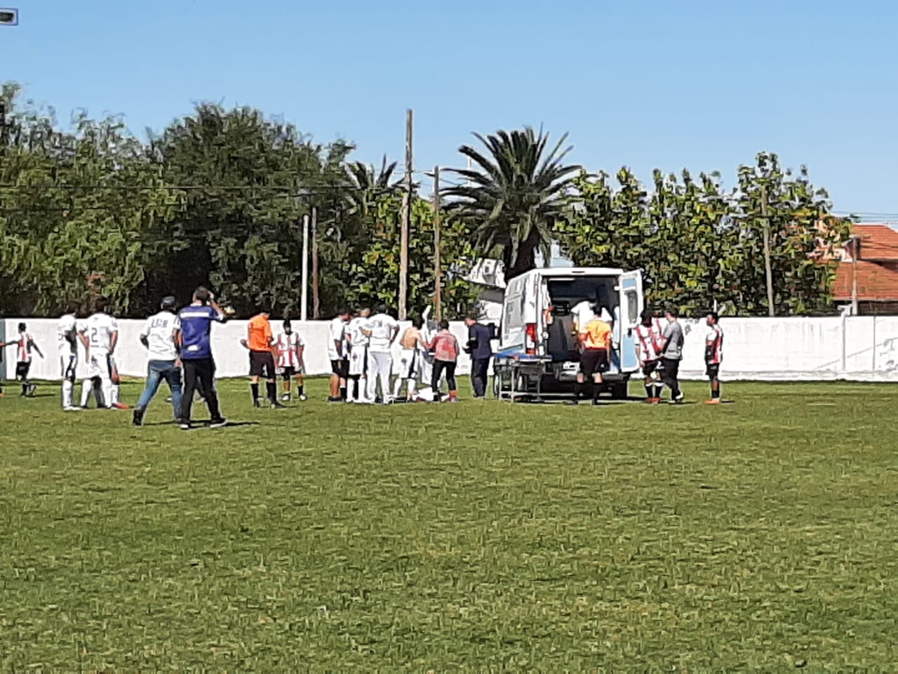 Para colmo de males, casi sobre el final del primer tiempo, Rambo Salas debió ser trasladado al hospital en ambulancia por un fuerte golpe que lo mantuvo desmayado durante algunos minutos. Supimos luego que ya se encuentra bien y está recuperado. En el momento de su salida, ingresó Antonio Navarro.