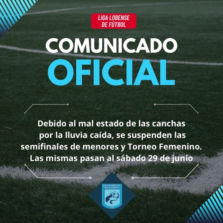 Lamentablemente las semifinales del Torneo de infanto juveniles Oscar Casal de la Liga Lobense de Fútbol, fueron reprogramadas. De acuerdo a lo informado recientemente, debido al mal estado de las canchas por la lluvia caída, se disputarán el sábado 29. A esperar una semana más.