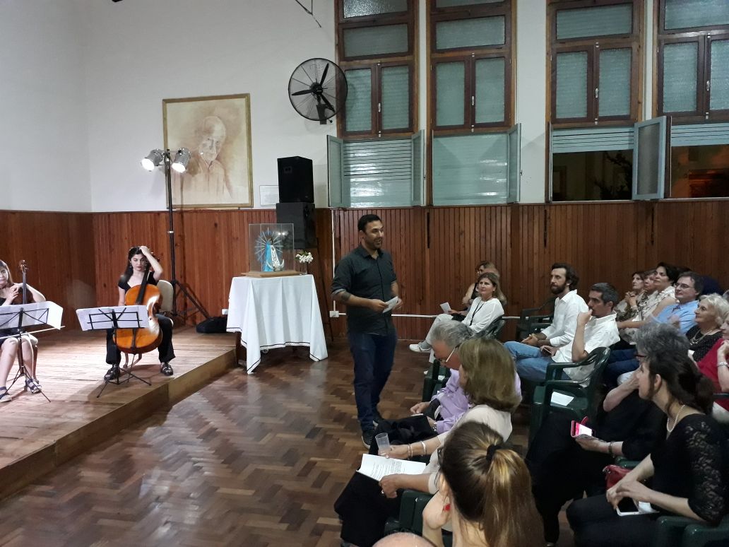 Anoche, coincidiendo con la Festividad de la Inmaculada Concepción de María, se presentó en el salón de actos del Instituto San Lorenzo, un espectáculo de altísimo nivel, llamado «Entre el dibujo y la melodía. El encuentro de las artes bajo el prisma de la música», a total beneficio del Centro de Estudiantes del Instituto San Lorenzo.