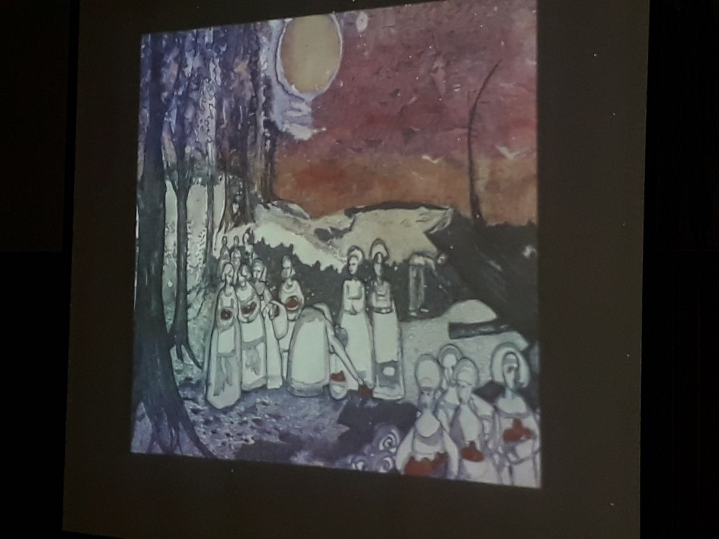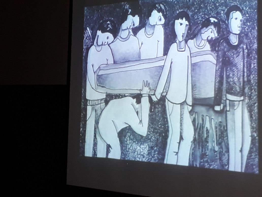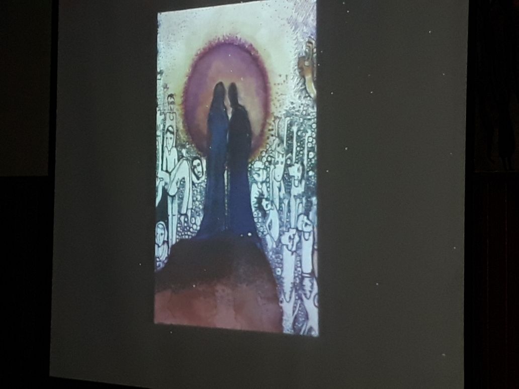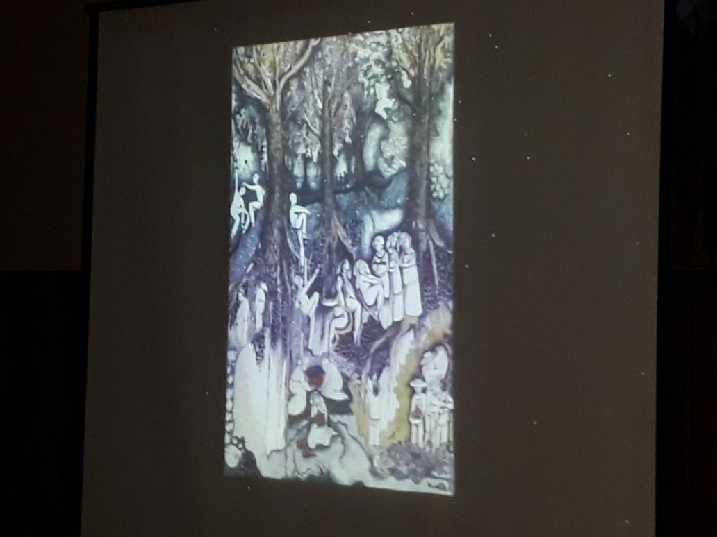 Luego de la presentación de este cuarteto de cuerdas, hubo un breve intervalo y a continuación se proyectaron las obras del profesor navarrero, Fernando Amalfi Zunzunegui, de quien todos conocemos sus dotes artísticos. Fernando es Maestro Superior en Arte, ha realizado numerosísimas muestras y actualmente asiste a los talleres de maestros de excelencia como Marcos Borio, José Marchi y Goyo Barja.