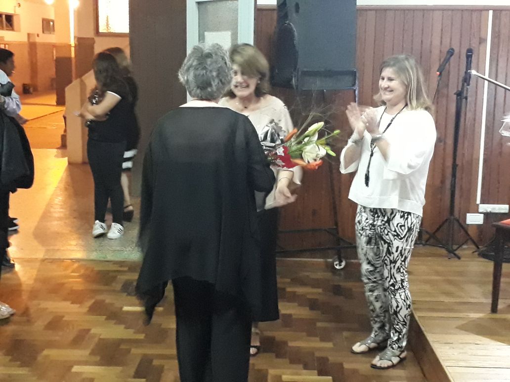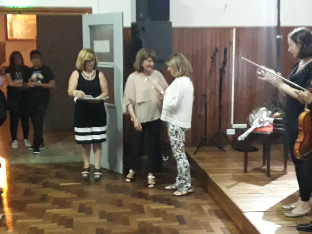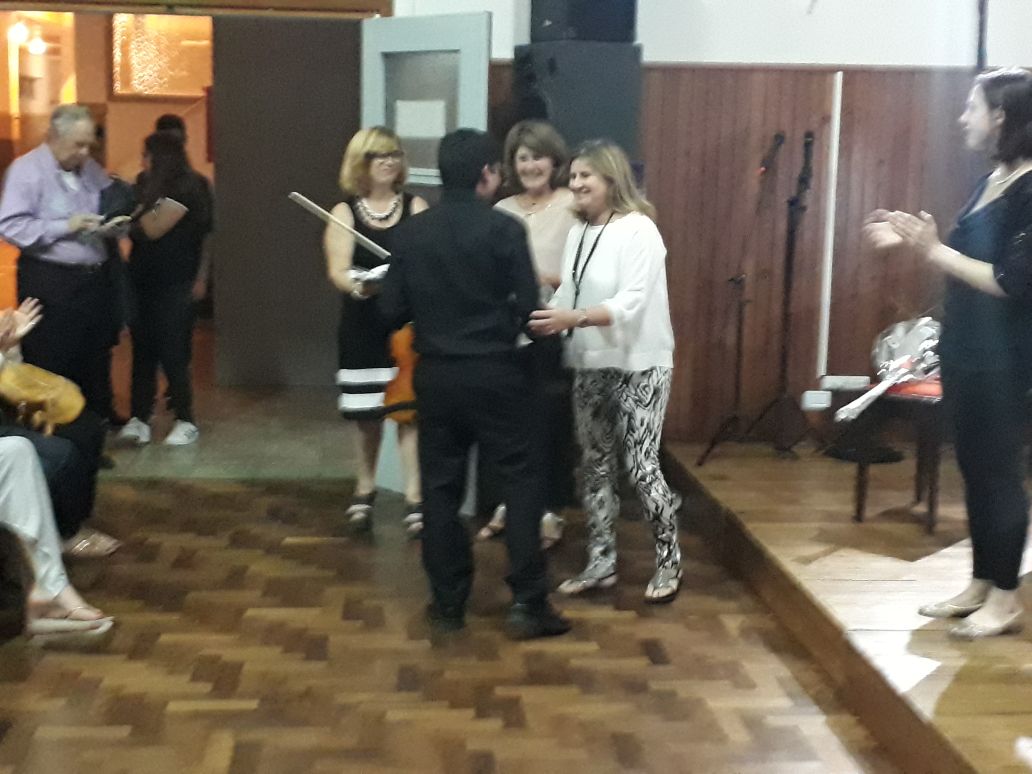 Luego del cálido aplauso de todos los presentes, Dolores agradeció a todos los que hicieron posible la realización de un evento de tal magnitud, y a los dos medios locales que asistieron; lo propio hizo la Directora del Instituto San Lorenzo de Navarro, Verónica Russo y luego hubo entrega de presentes a los músicos.