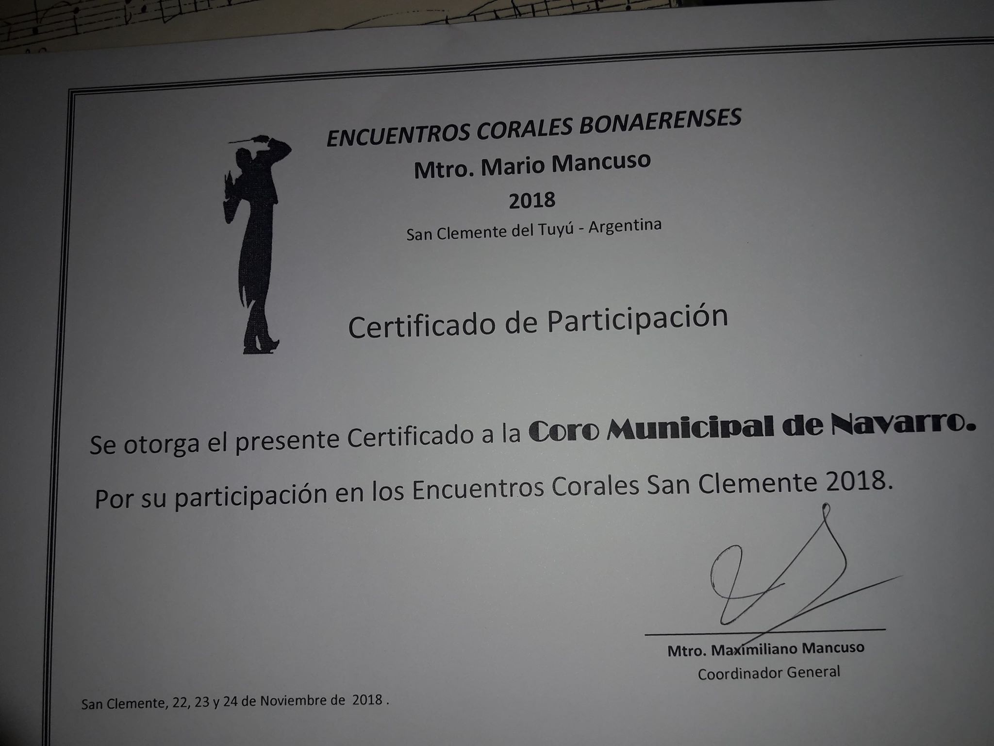 El Coro Municipal participó los días 22, 23 y 24 de noviembre, del Encuentro Coral Maestro Mario Mancuso en la localidad de San Clemente del Tuyú. Del mismo participaron 12 coros en talleres de técnica vocal y se actuó en diferentes sedes. Una muy linda experiencia.